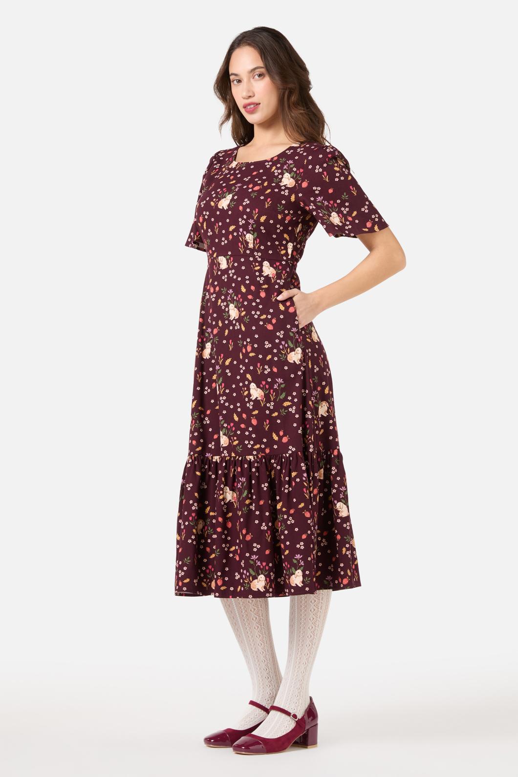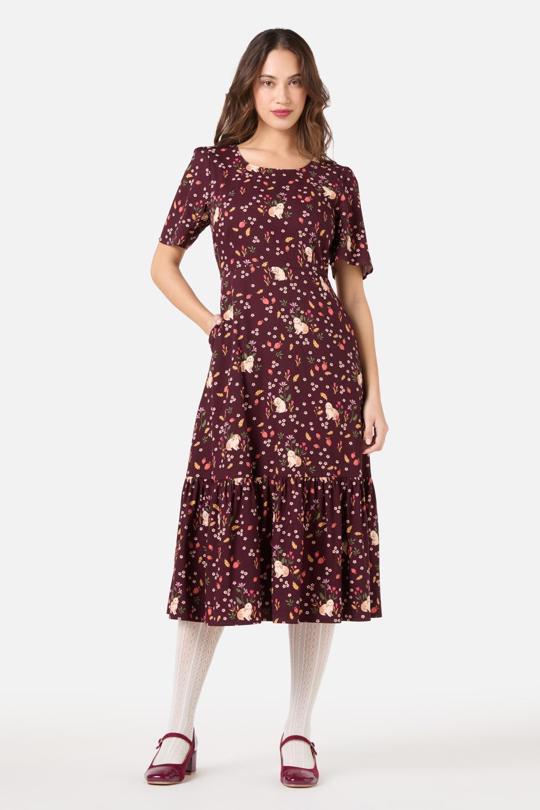 Wander into a whimsical garden with the Coco Rabbit Midi Dress by Princess Highway—a dreamy print scattered with tiny rabbits, sweet strawberries, and dainty florals. It’s the perfect blend of playfulness and vintage charm.Featuring a softly fitted bodice with darts, floaty short sleeves, and a romantic tiered skirt with a wide ruffle, this midi falls gracefully to mid-calf. Made from a smooth cotton-viscose blend, it’s as breezy as a spring afternoon.Fabric Composition61% Cotton, 39% ViscoseCare InstructionsCold delicate machine washWash inside out with like coloursDo not wring, bleach, soak or tumble dryLine dry in shadeCool iron on reverse if requiredDo not dry cleanModel DetailsMia wears a size 8Height: 176cm | Bust: 86cm | Waist: 59cm | Hips: 92cm