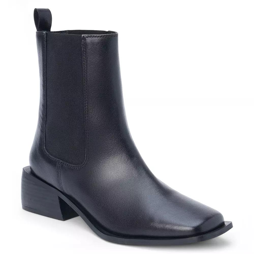 Channel effortless chic with the square toe Chelsea boot from Coconuts by Matisse. Its sleek design seamlessly pairs with everything from tailored trousers to your favorite jeans, making it a versatile choice for any occasion. Click this FOOTWEAR GUIDE to find the perfect fit and more! - https://www.kohls.com/feature/shoesizeguide.jsp. FEATURES: Square toe design for a modern look, Easy pull-on style for convenience. DETAILS: Square toe, Pull-on closure, 1.75" heel height, 0.25" platform height, Slip-resistant outsole, Imported. FIT & SIZE: Ankle boot shaft detail, Shaft circumference: 10.5 inches, Shaft height: 6.5 inches. MATERIAL & CARE: Leather and suede upper, Textile lining, Manmade outsole, Spot clean. Size: 6 Med. Color: Black. Gender: female. Age Group: adult. Material: FAUX LEATHER.