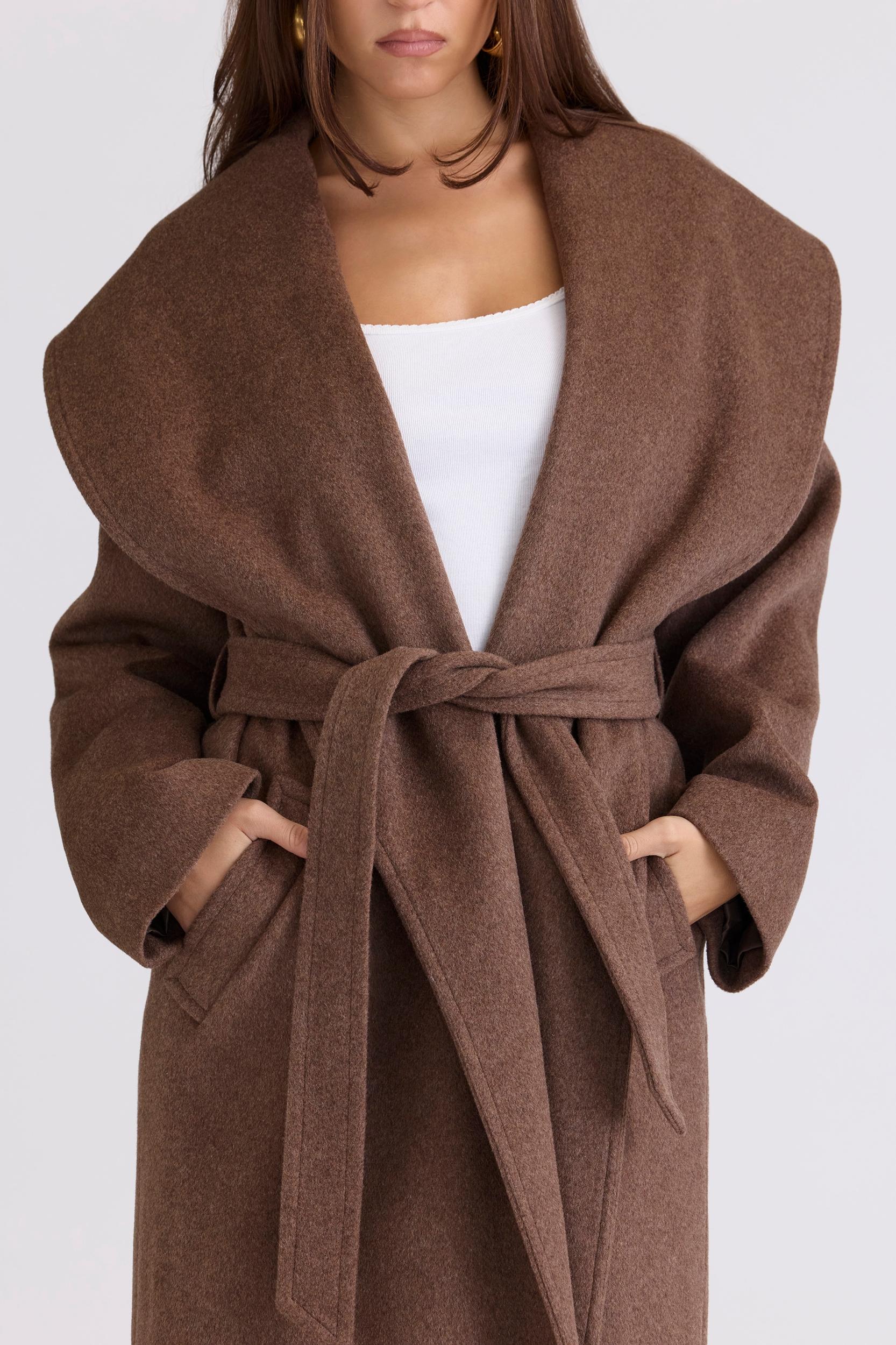 If you take a closer look, the 'Cocoon' is even more than meets the eye. On the interior, you'll find a hidden pocket in the chest and we've also added a large pocket on each side making it super easy to wear all day long. The self-tie belt is totally adjustable and the soft luxurious wool fabric is an absolute dream to wrap up in.