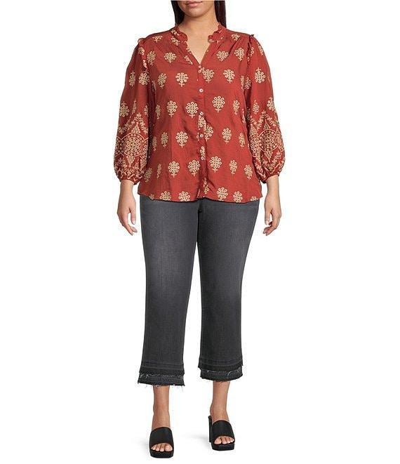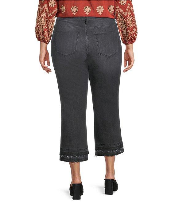 From Code Bleu Plus, these jeans feature: Stretch denim fabrication High-rise 5-pocket style Belt loops Straight leg Raw cut edge hem Button/zip fly closure Approx. 26" inseam, 12" front rise, 19" back rise, 19.5" leg opening Cotton/polyester/viscose/spandex Machine wash/tumble dry Imported.