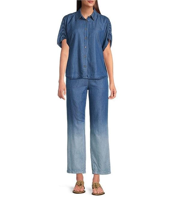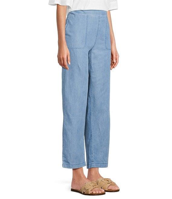From Code Blue, these pants feature: Straight leg silhouette Smocked waistband High rise Two front slant and two back patch, all functional pockets Slim fit Faux fly Pull on construction Approx. 28" inseam, 16.25" leg opening, 13.25"front rise,16.5" back rise Cotton/lyocell Machine wash cold/line dry Imported.