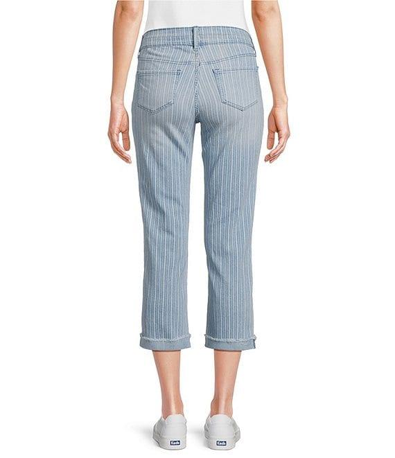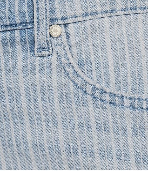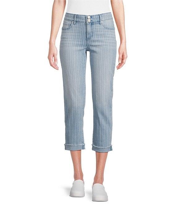 From Code Bleu, these jeans feature: Stretch denim fabrication Stripe print Mid rise Belt loops 5 pockets styling Fray cut hem detail Front button and zipper closure Approx. 24.25" inseam, 15"leg opening, 10.25" front rise, 15.75" back rise Cotton/spandex Machine wash Imported.