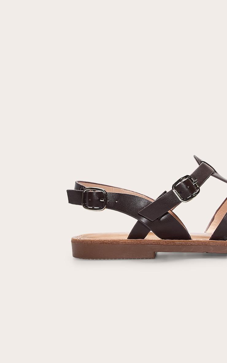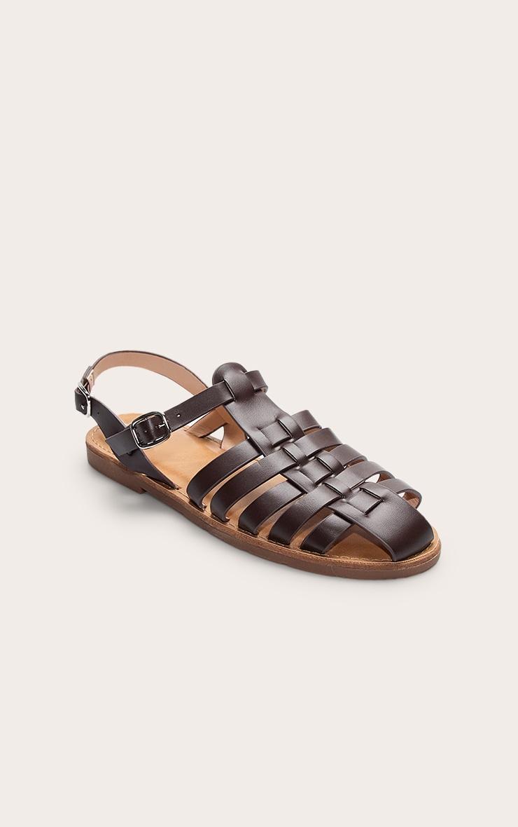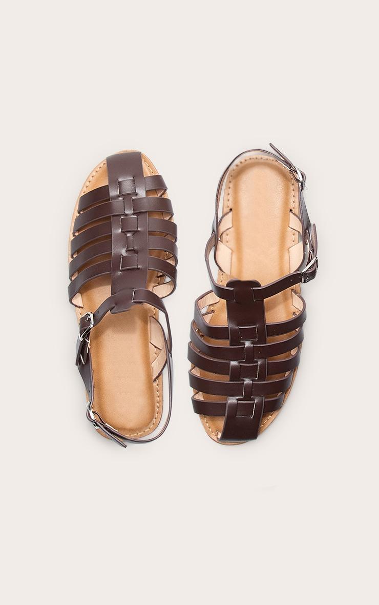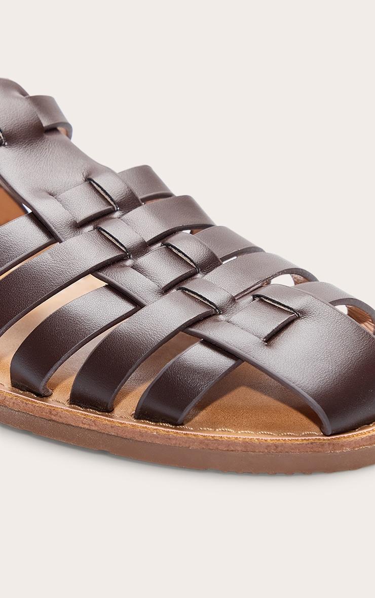 Take your off-duty look to the next level with these coffee faux leather gladiator cage sandals. Featuring a faux leather material and with strappy cage design for all-day comfort with serious style. Pair with denim shorts and a crop top for an everyday outfit.p]:!mb-4inch>Brand: PrettyLittleThingCategory: FootwearProduct type: SandalsColor: CoffeeMaterial: Faux LeatherOccasion: Day