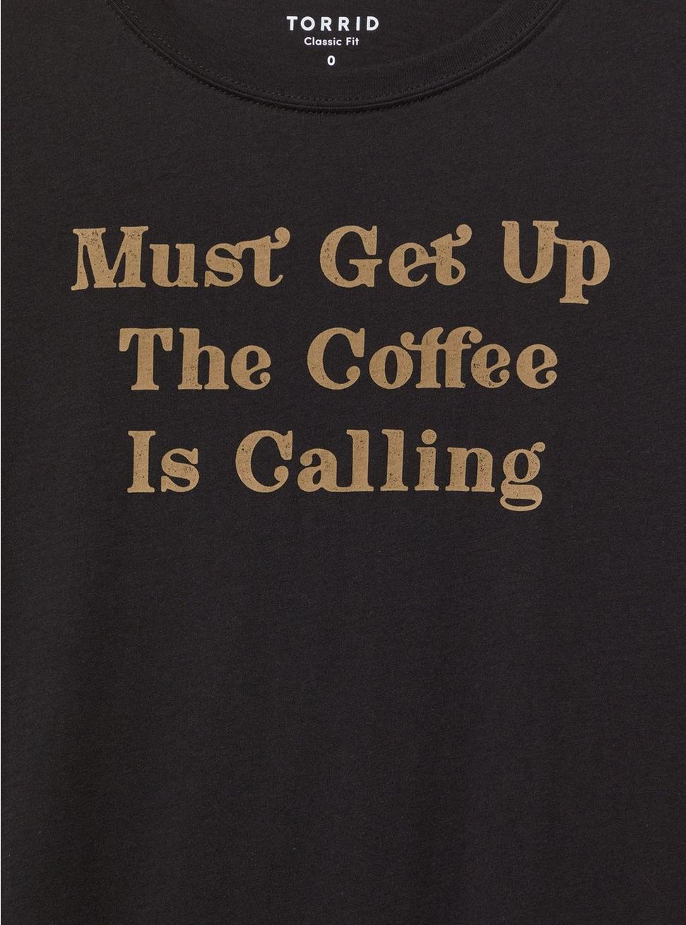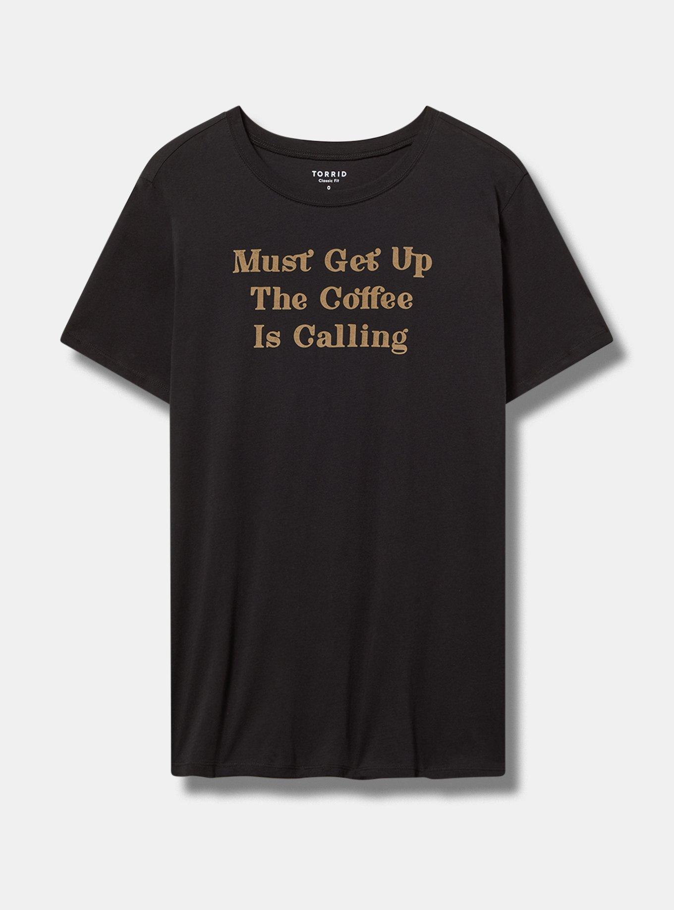 FITClassic fit: Fitted up top, eased through the body.Measures 30'' from shoulder (size 2).MATERIALS + CAREHeritage Jersey knit fabric: Your essential, textured cotton fabric.Stretch level: Maximum.100% cotton.Machine wash cold. Tumble dry low.Imported.DETAILS Crew neckline.Short sleeves.Coffee is calling graphic.