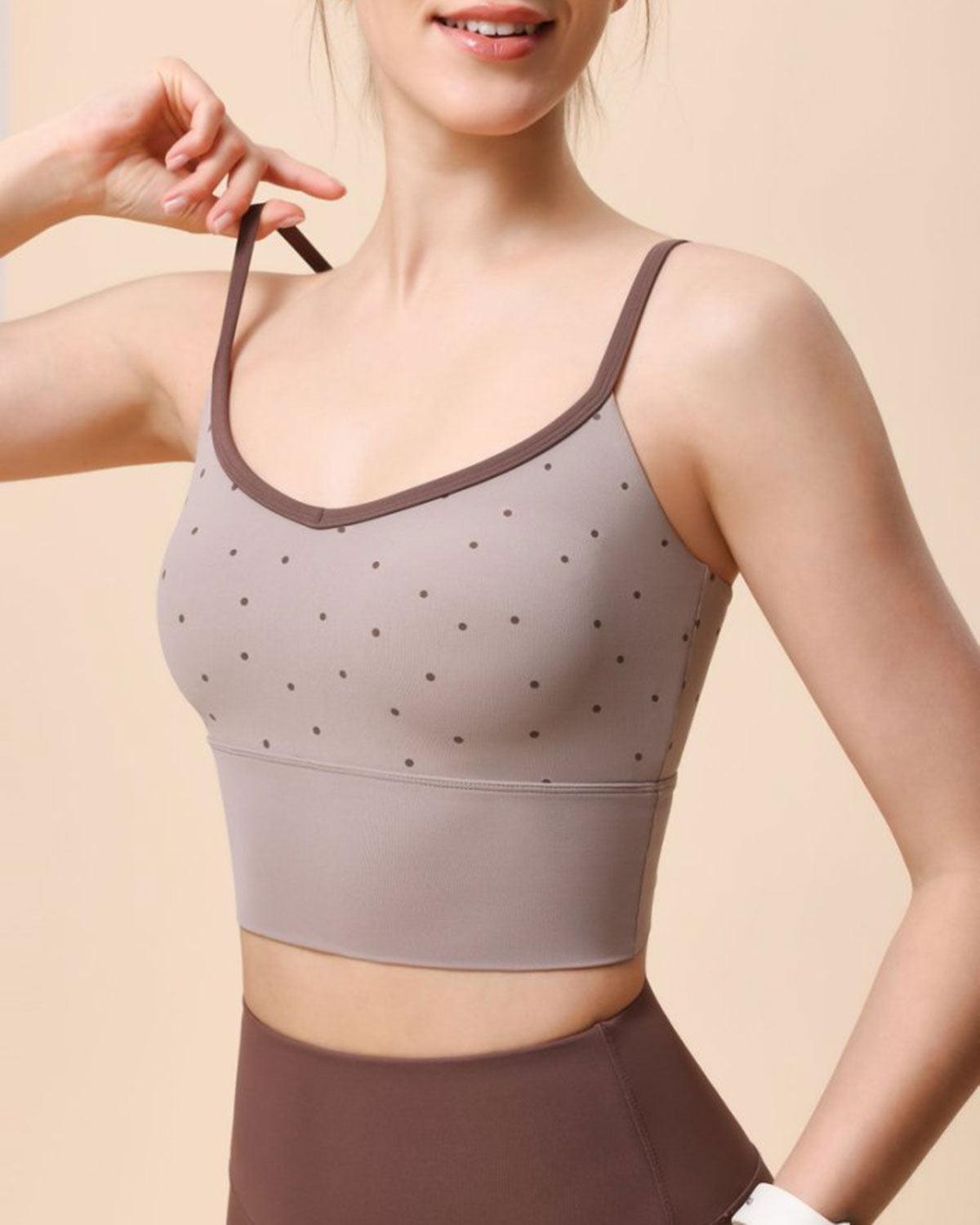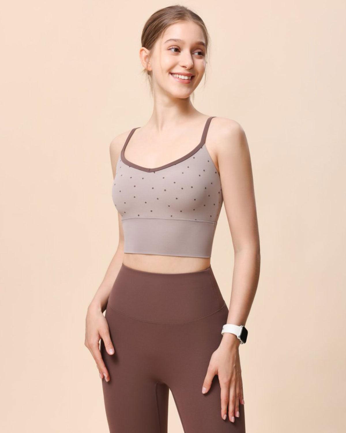 Style: Active Season: Spring, Summer, Fall Tops Type: Camisole Back Neckline: Strap Fabric Stretch: High Stretch Sleeve Length: Sleeveless Sleeve Type: Sleeveless Neckline: V Neck Fabric: Nylon 79.0%, Spandex 21.0% Material: Knit Padding: Unremovable Soft Cups Fabric functionality: Sleek, Breathable, Four-way stretch, Sweat-wicking Support: Light Support