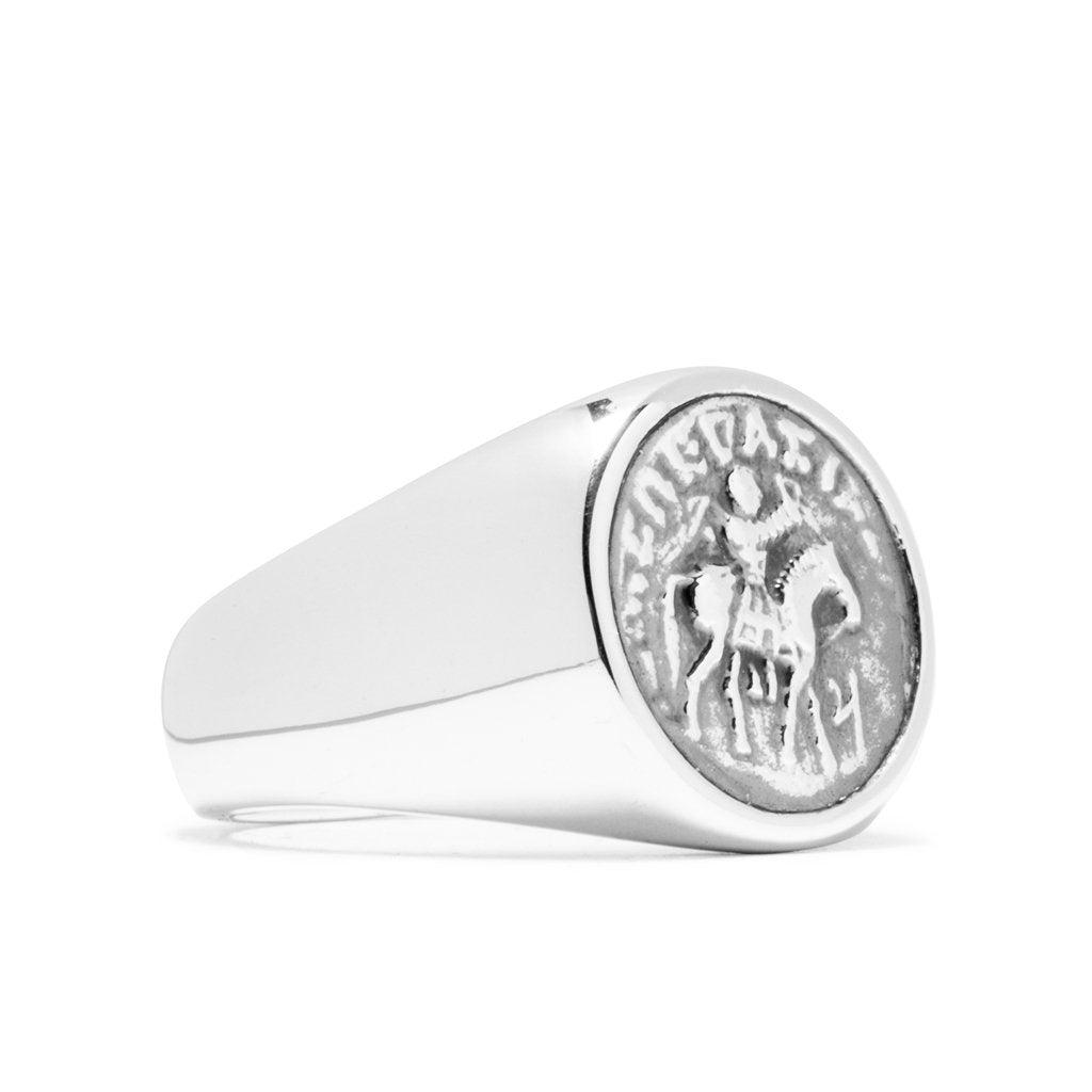 Oslo-based lifestyle brand Tom Wood was founded in 2013 by Mona Jensen. A brand whose focus is centered on crafting luxury clothing and accessories that emphasize Scandinavian functionalism and classic design at their core. Pictured is the Tom Wood Coin Ring - 925 Sterling Silver. 925 Sterling Silver Slightly oxidized Engraved branding Style no: R75CMCO01S925