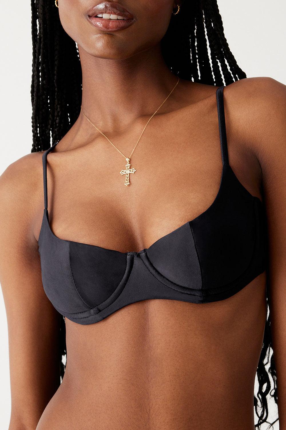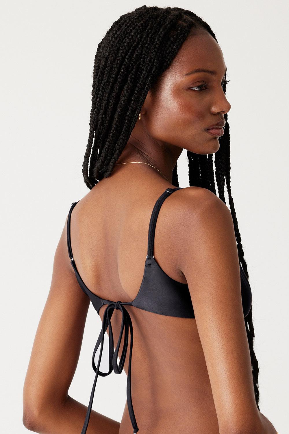 The Cola bikini top is designed to give you the lift you're looking for, with adjustable shoulder straps and underwire support. Pair the Cola balconette bikini top with the matching Divine bottom. Fabric 80% Nylon + 20% Spandex Flat Swim SoftSwim fabric Adjustable Shoulder Straps and Back Tie Model Size & Fit This style runs true to size Helen is wearing a size Small Height 5’10”(179.07cm) Bust 31.5” (80.01cm), Waist 24” (60.96cm), Hips 34” (86.36cm)