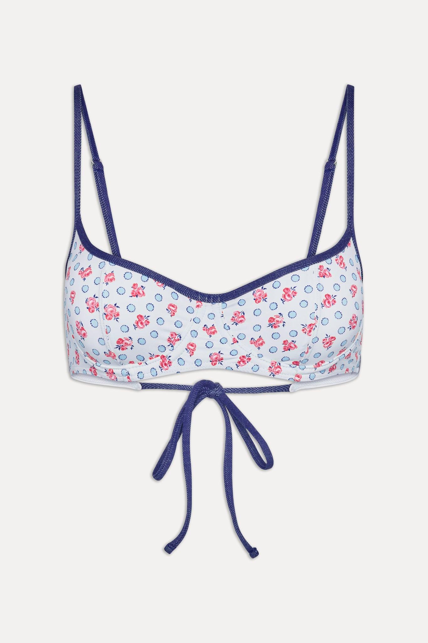 This bralette bikini top will give you the lift you're looking for. The Cola bikini top features our new Wild Rose floral pattern. Details Balconette style with medium coverage Underwire support for a secure fit Adjustable shoulder straps and back ties Fabric 80% Nylon + 20% Spandex Model Size & Fit This style runs true to size Anna is wearing a size Small Height 5' 10" (178cm) Bust 32" (81), Waist 23.5” (59.7cm), Hips 34.5” (87.6cm)