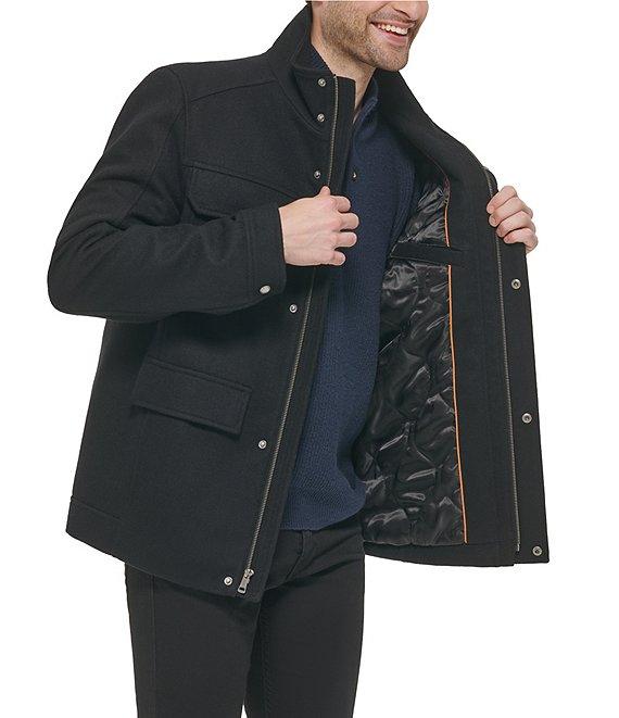 Cole Haan Long Sleeve Multi-Pocket Field Wool Blend Coat