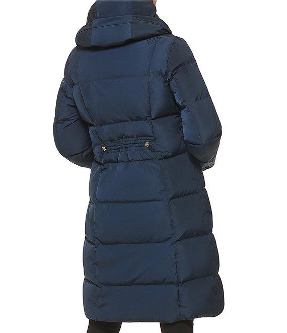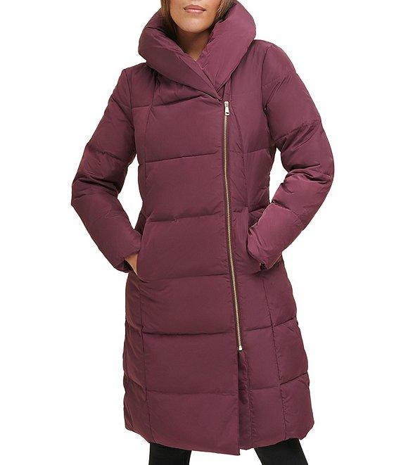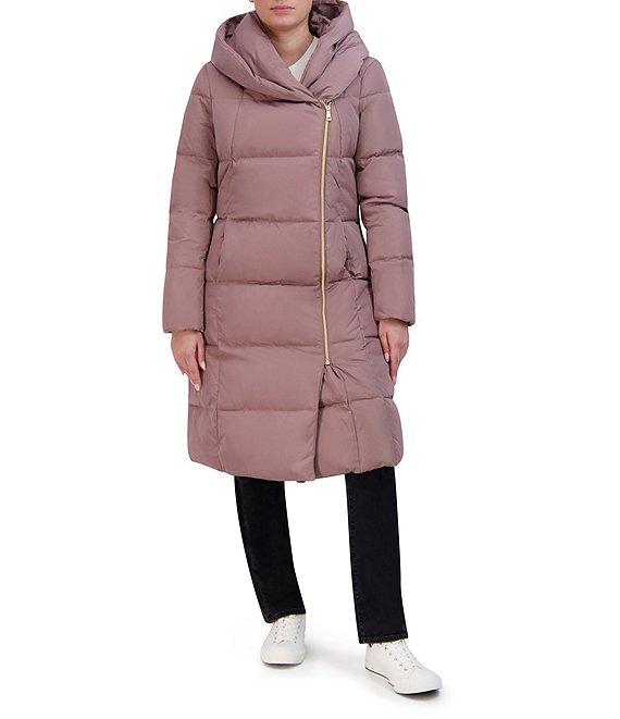 From Cole Haan Signature, this coat features: Oversize hooded neckline Long sleeves Two welt pockets Back waist elastic drawcord Quilted pattern Taffeta down Fitted Fully lined Straight hemline Front zip closure Approx. 40" length Polyester/down cluster/waterfowl feathers; lining: polyester Machine wash Imported.