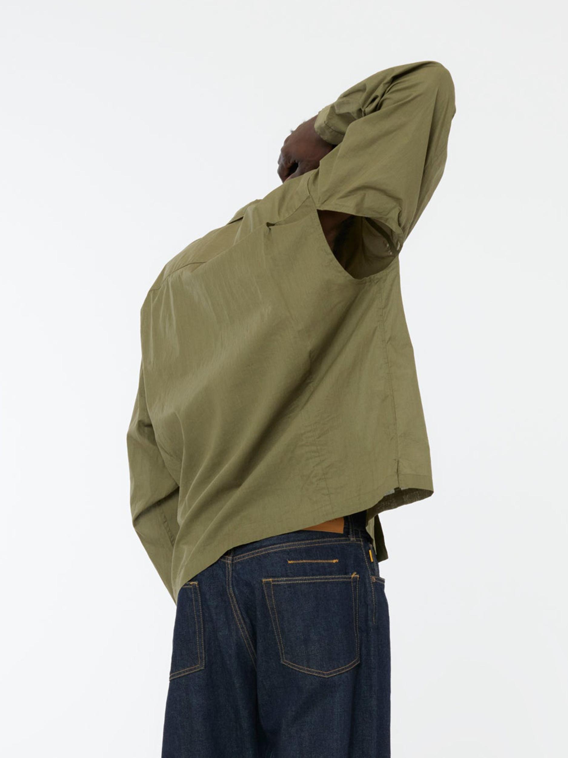 The Unused Collar BD Shirt is a classic piece that seamlessly combines comfort and sophistication. This button-down shirt is versatile for any occasion, offering a timeless look with a relaxed fit. Model is 6'2 wearing size 3