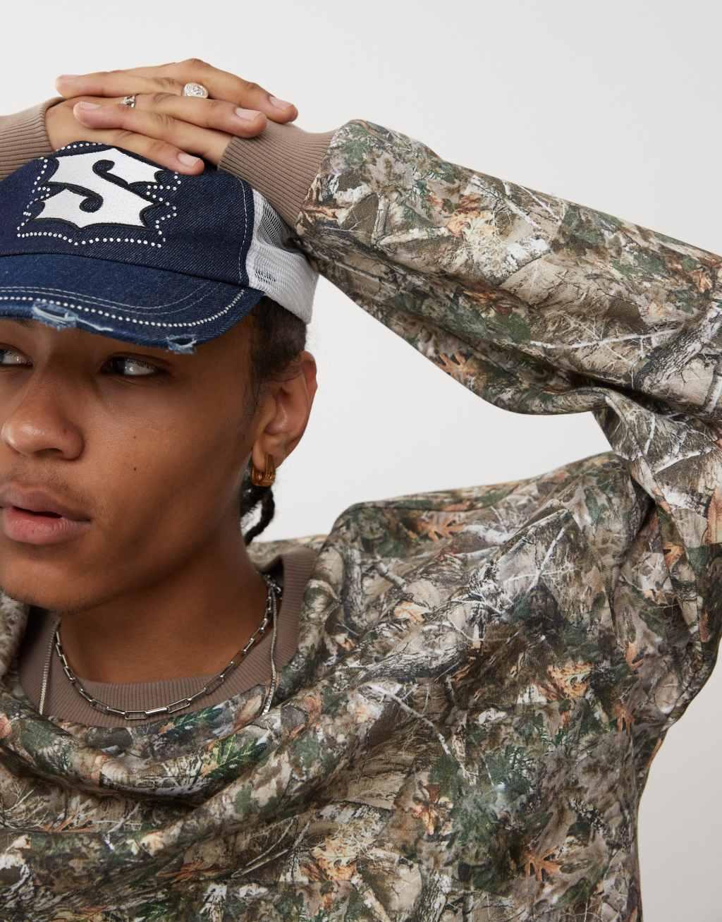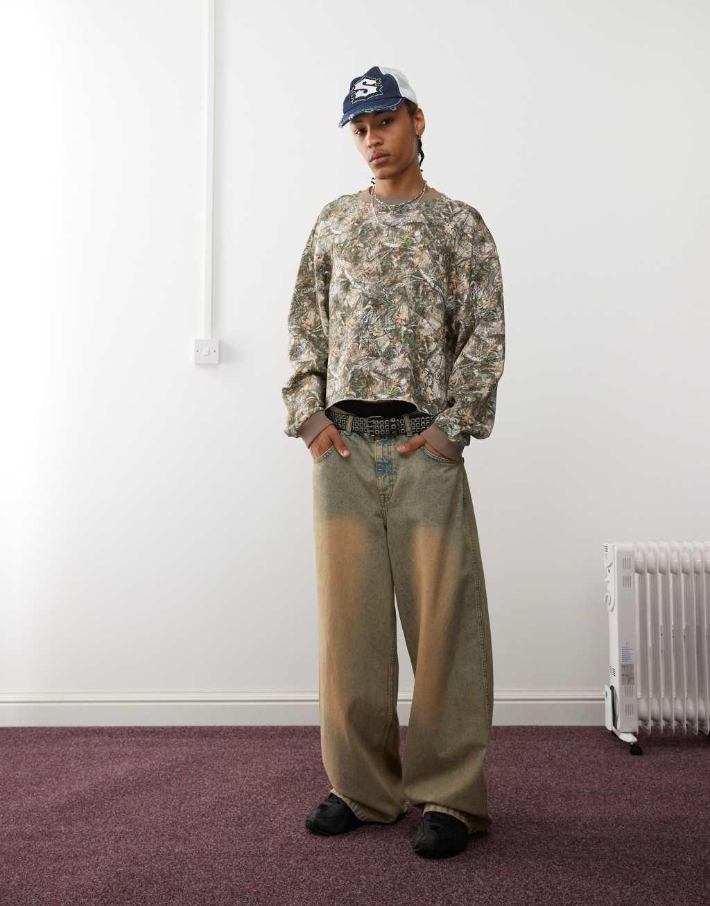 COLLUSION Boxy sweatshirt in khaki camo multi print