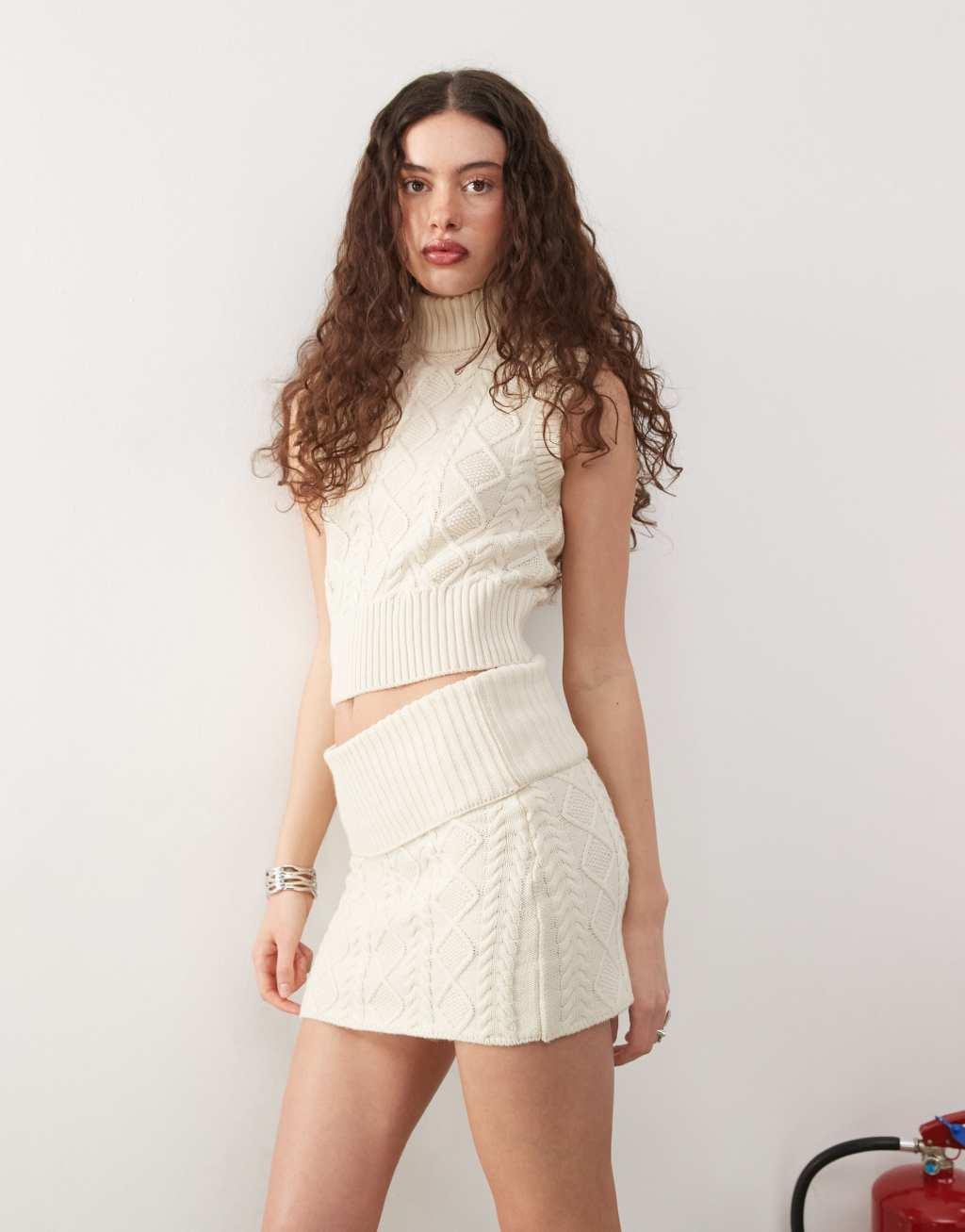 COLLUSION cable knit mini skirt in ecru - part of a set