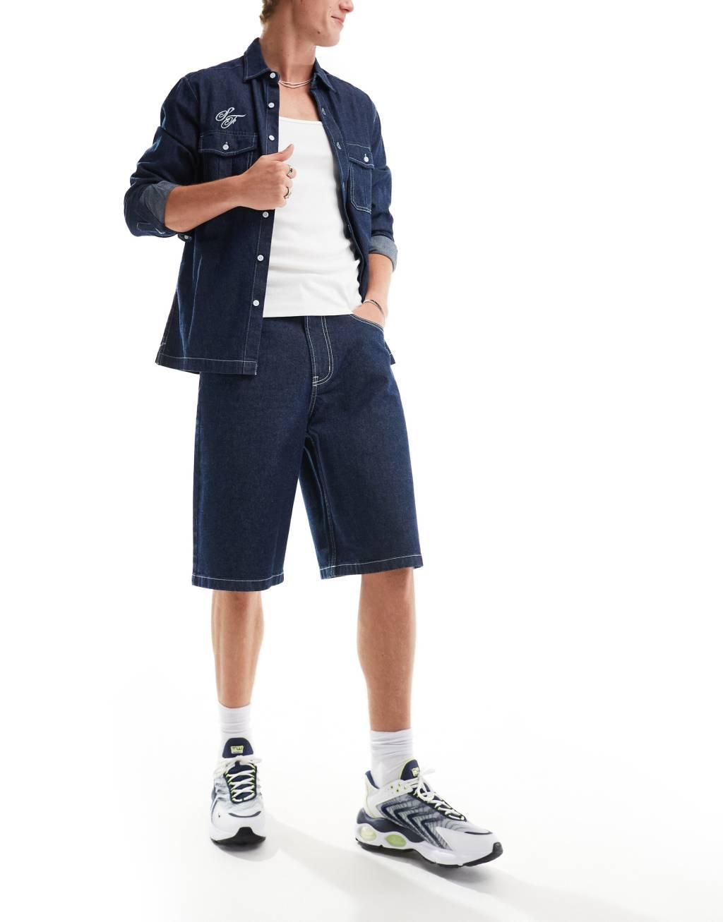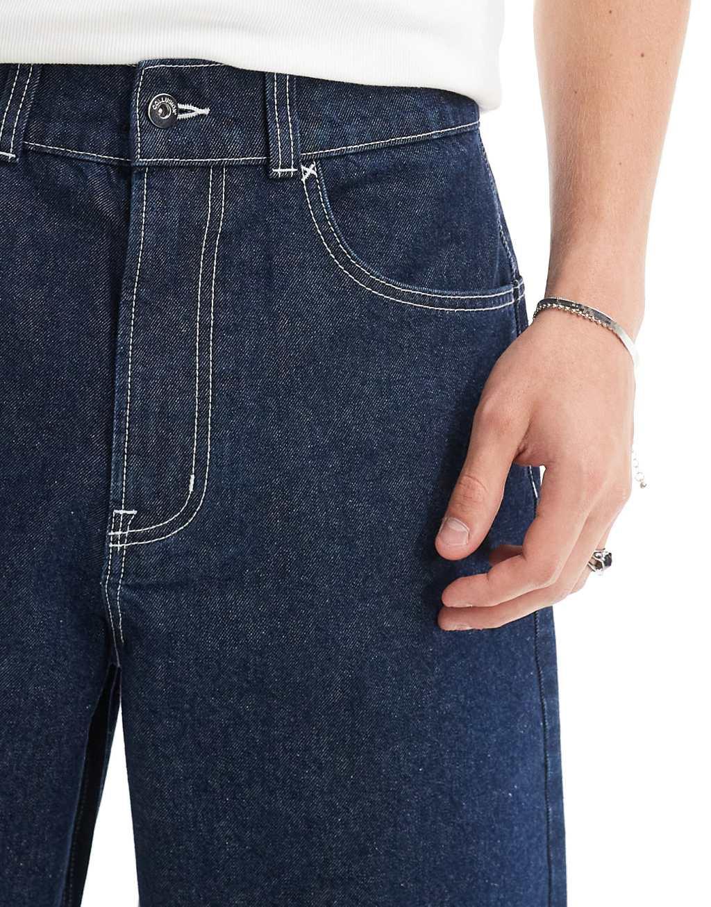 COLLUSION denim skater jorts with contrast stitch in rinsewash