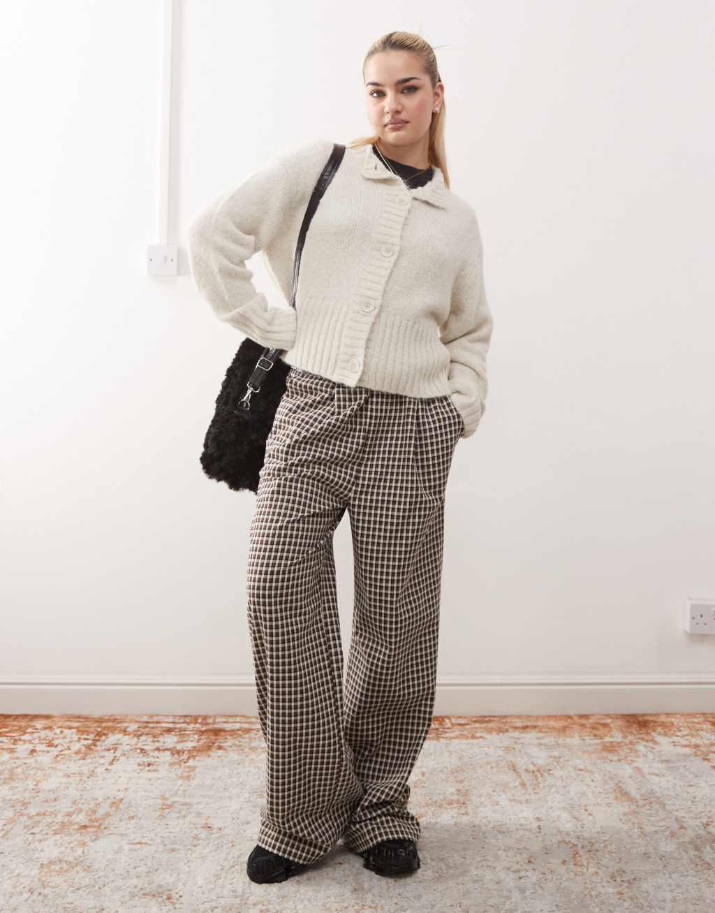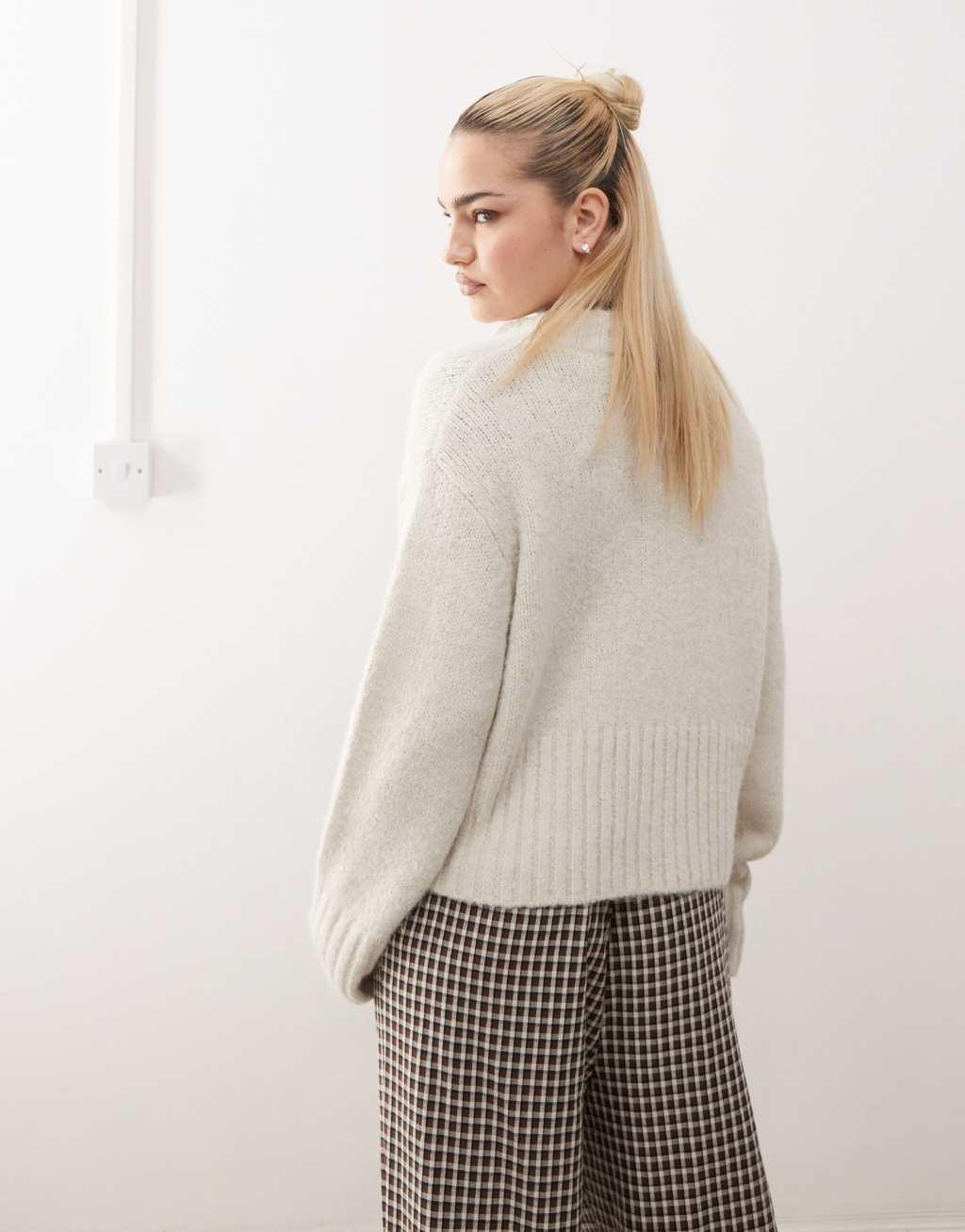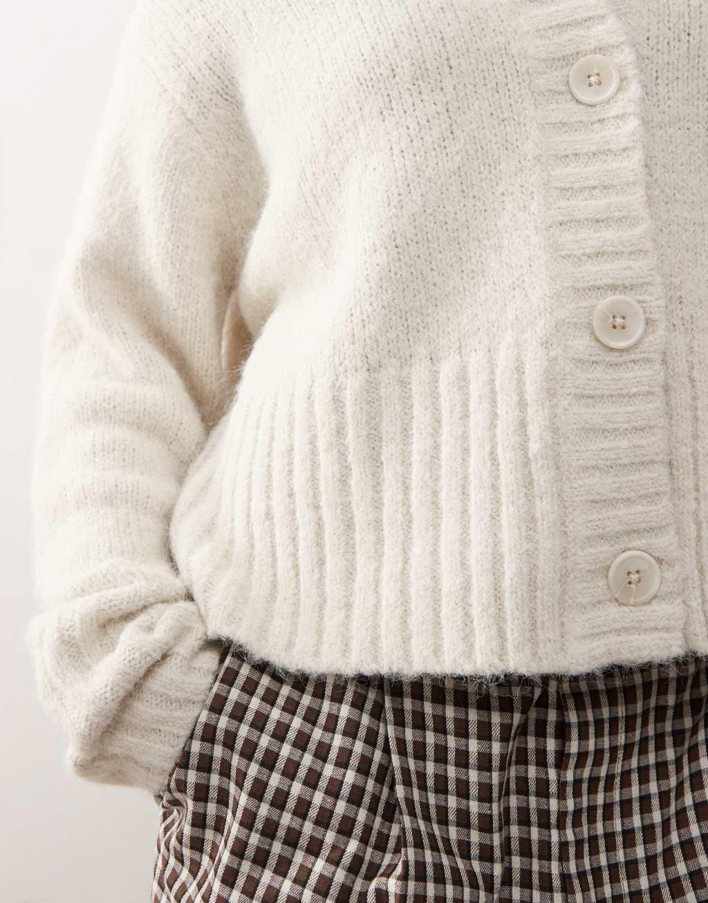 COLLUSION fluffy textured crew neck cardigan in cream