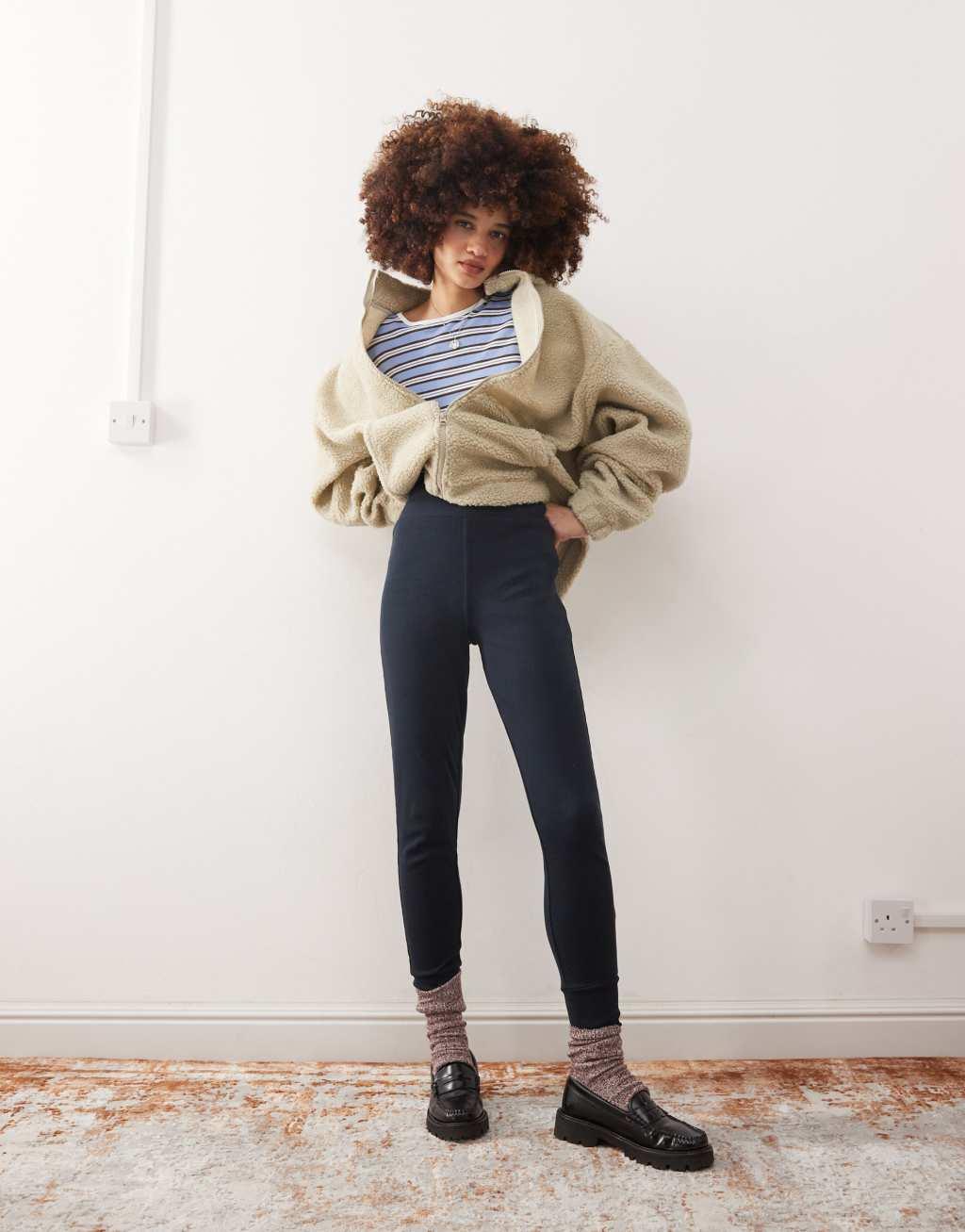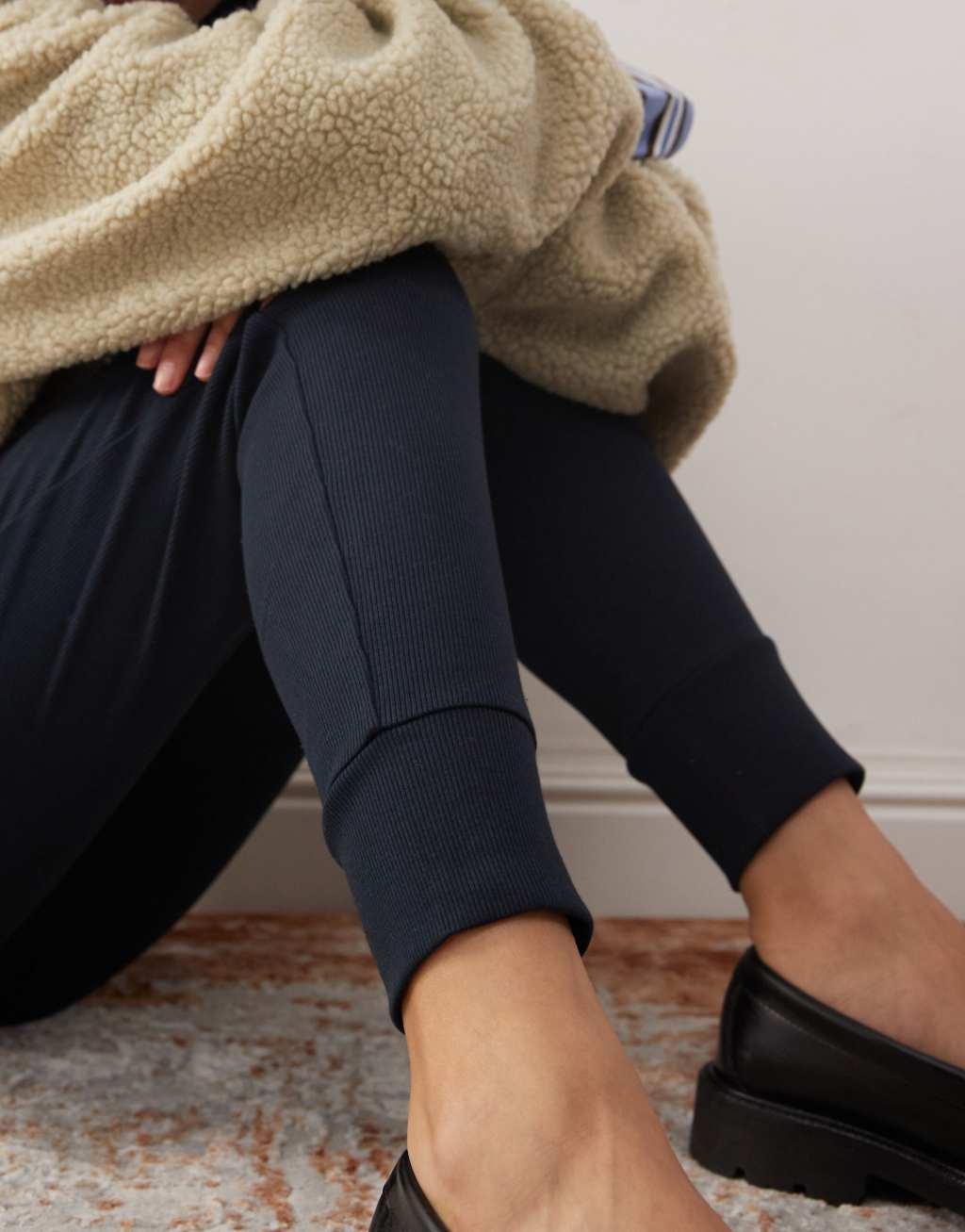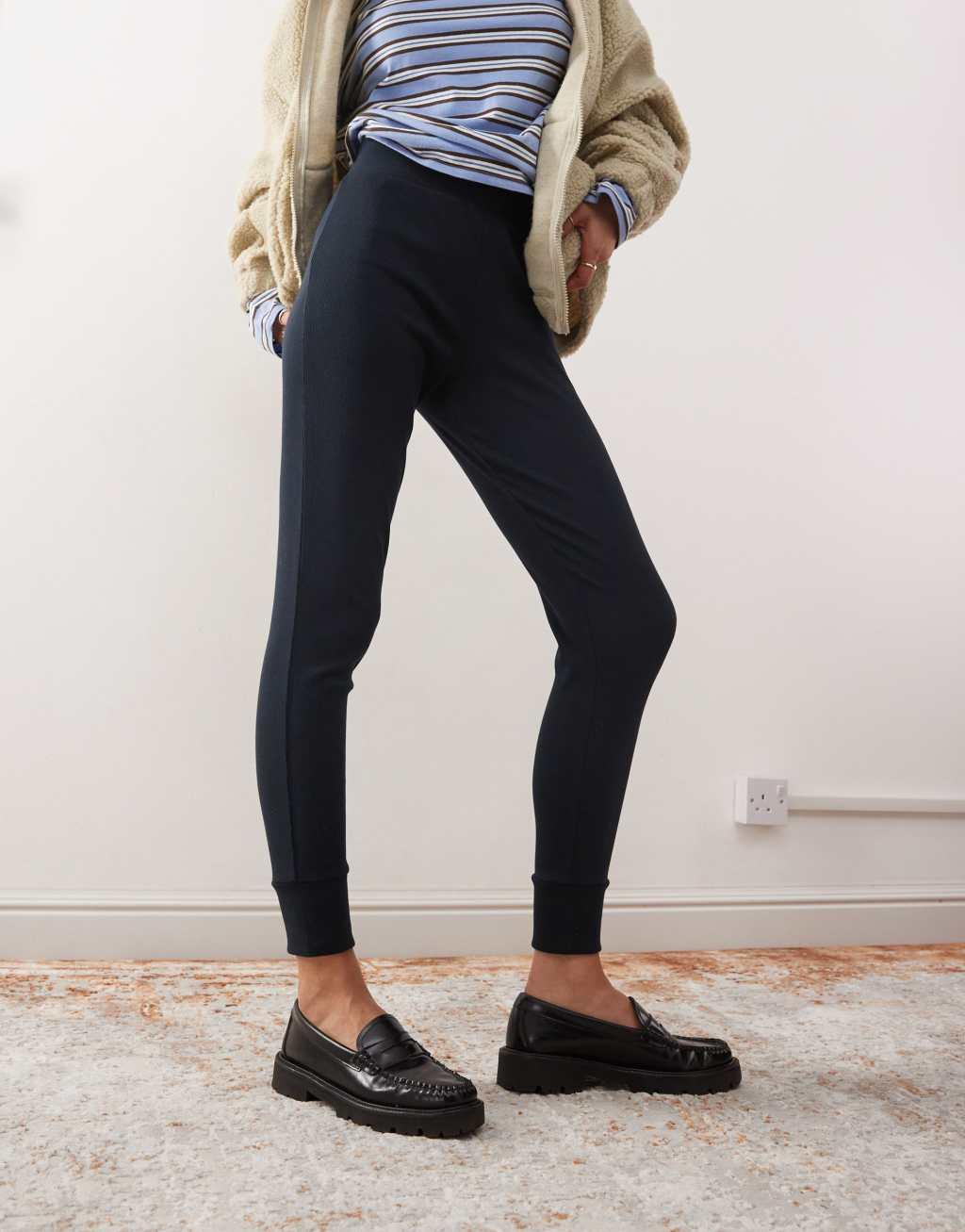 COLLUSION heavyweight ribbed leggings in dark gray with deep cuff