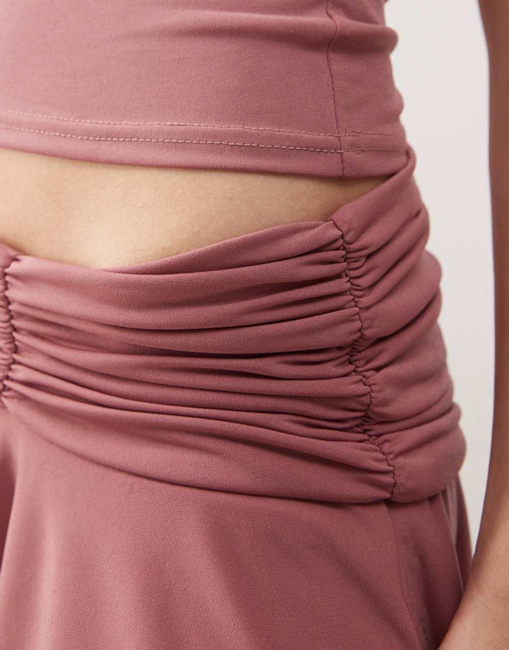 COLLUSION soft slinky micro mini ruched skirt in rose - part of a set