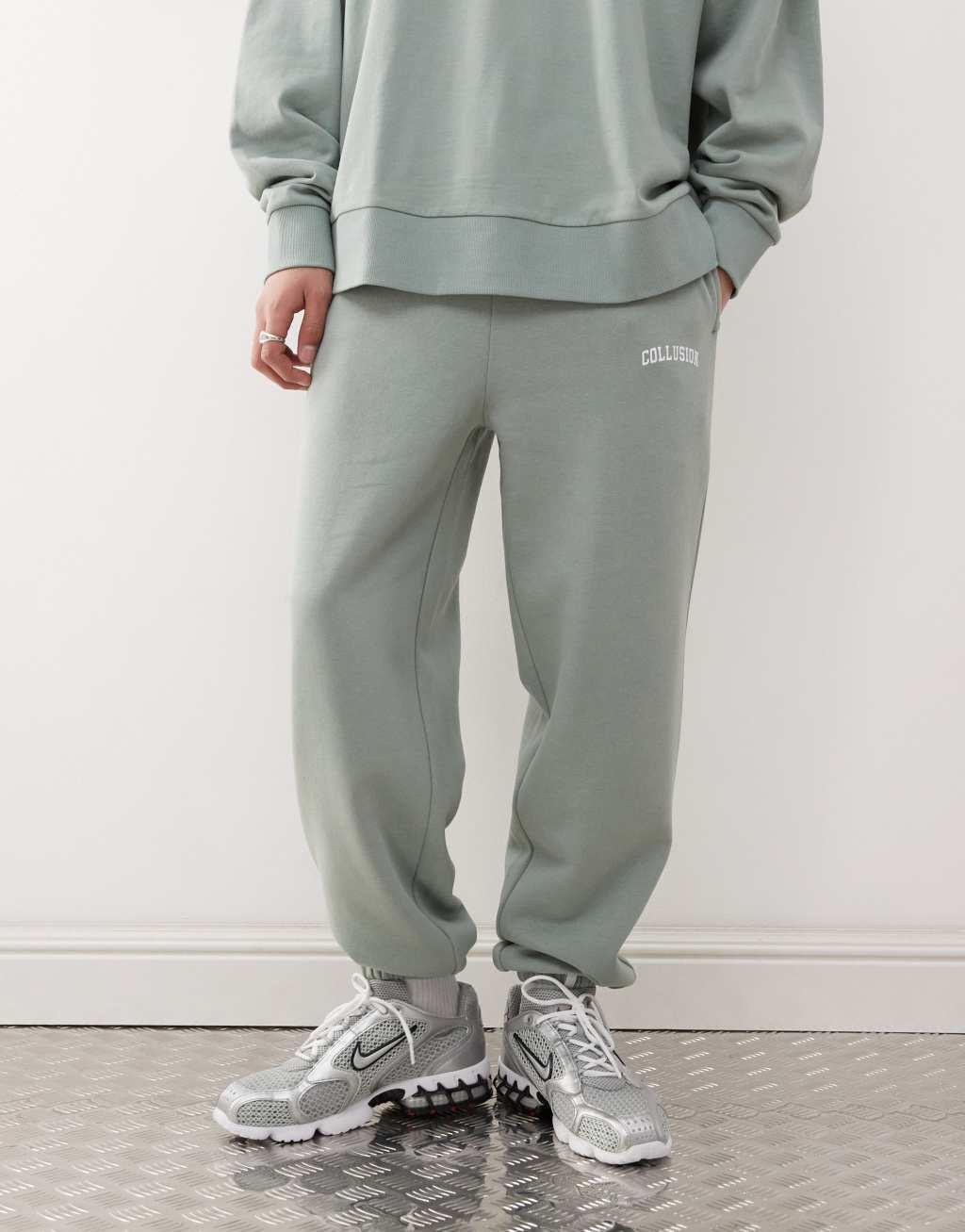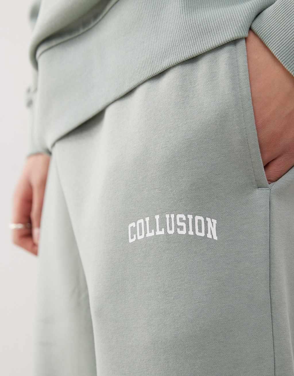 Sweatpants by Collusion Exclusive to ASOS Sweatshirt sold separately Elasticated drawstring waist Functional pockets Logo print to thigh Elastic cuffs Regular, tapered fit