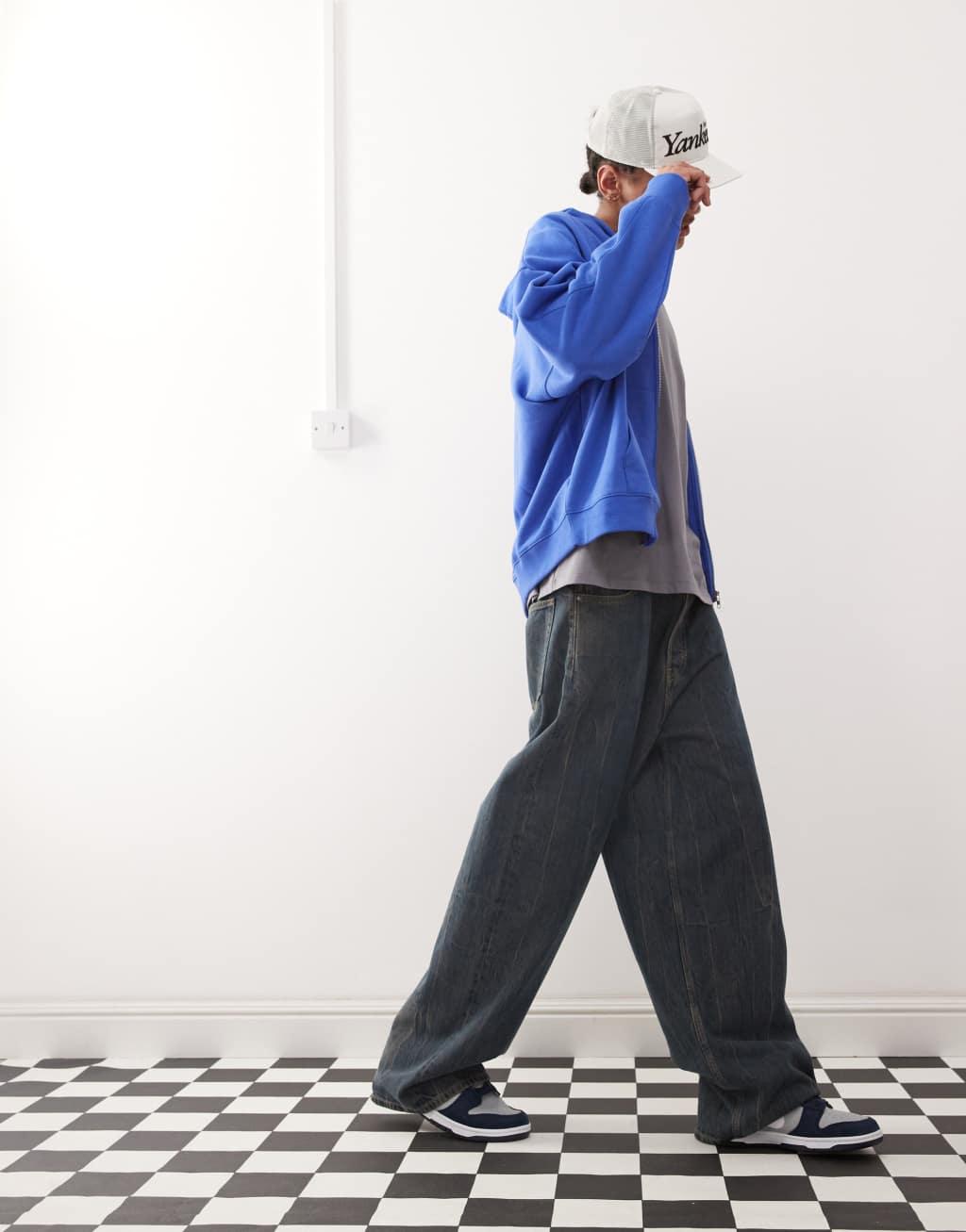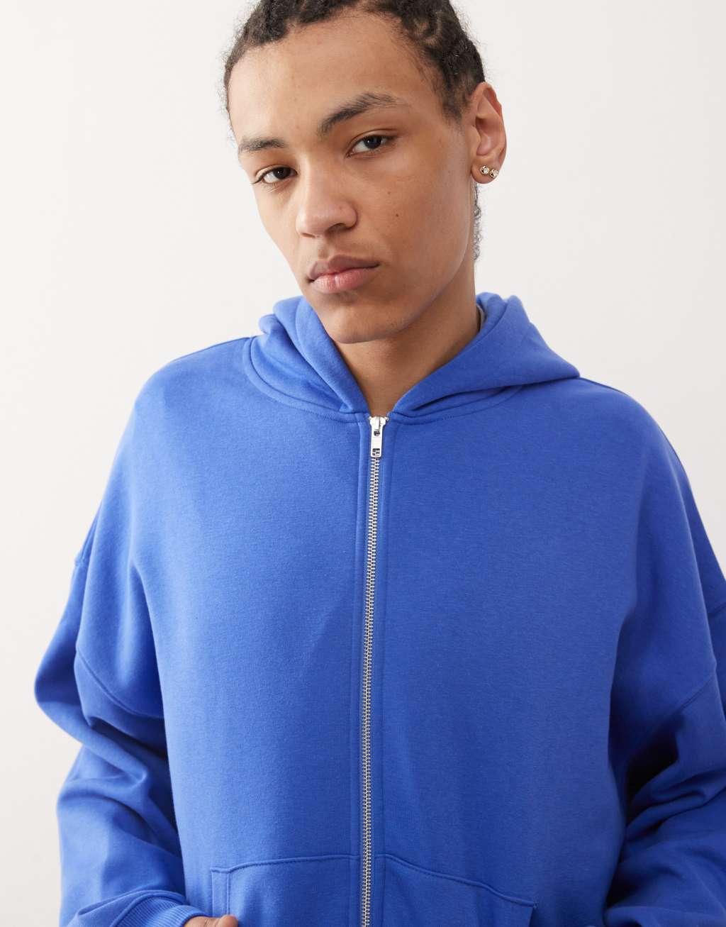 COLLUSION zip up boxy hoodie in blue