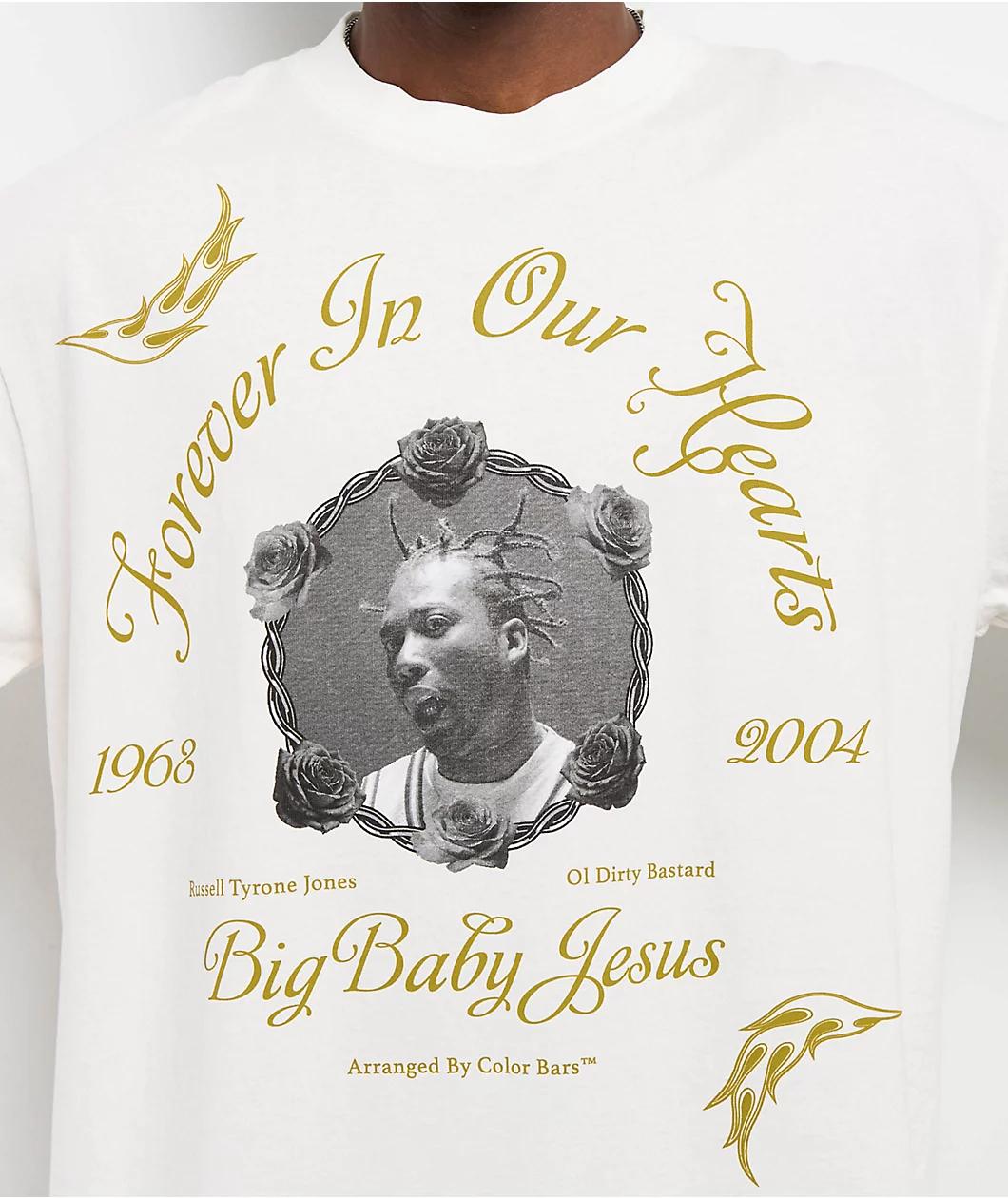 Pay homage to a pioneer of rap and hip-hop with the Memorial white t-shirt from the limited edition collaboration by Color Bars and Ol' Dirty Bastard™. Mimicking a funeral program, the front of the short sleeve features a photograph of "Dirt Mc