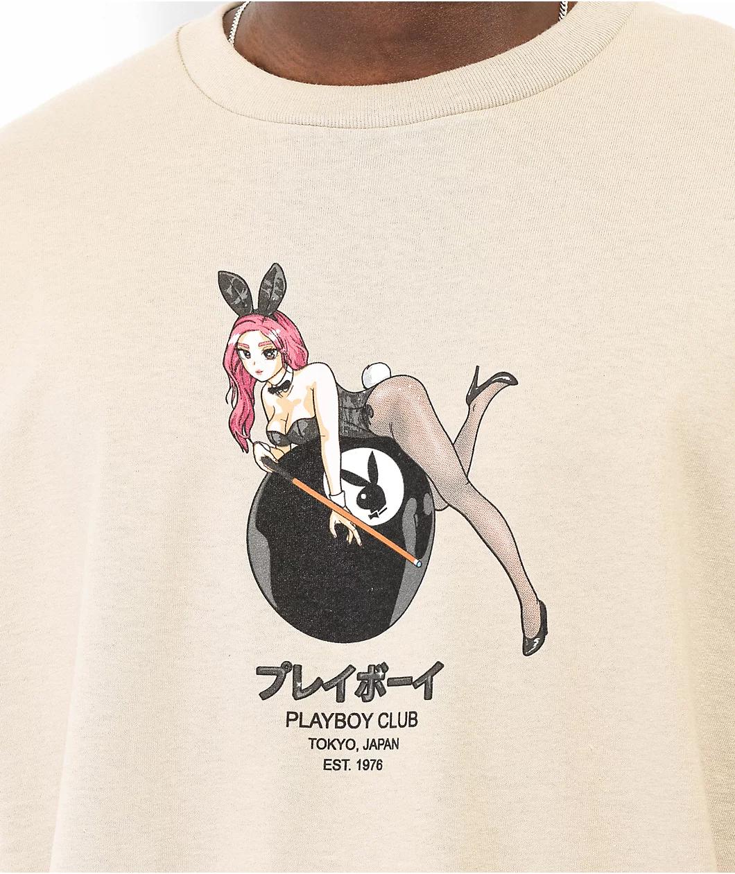 The 8 Ball t-shirt from Color Bars x Playboy comes in a sand colorway, adorned on the front with a screen-printed graphic of an anime Playboy bunny holding a pool stick while lounging on a giant 8 ball boasting the Playboy logo.