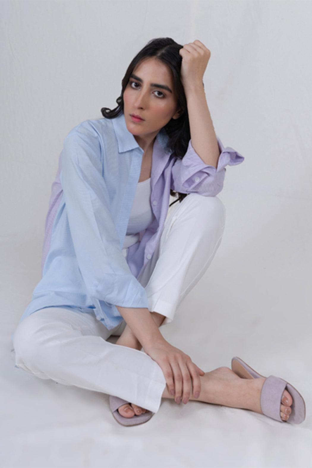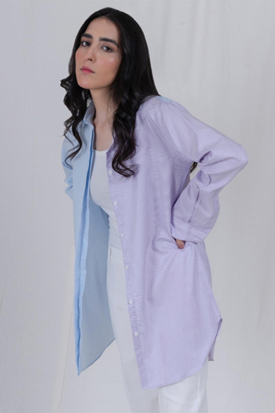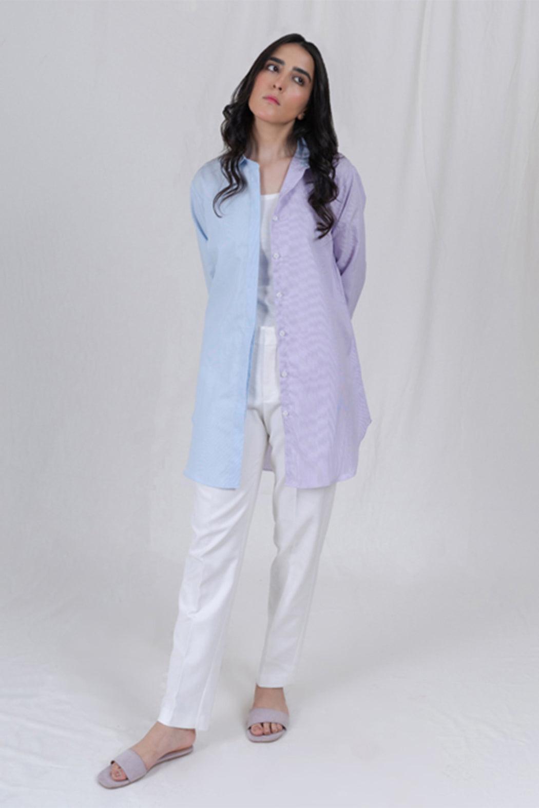 COLOR BLOCK STRIPED OVERSIZED SHIRT