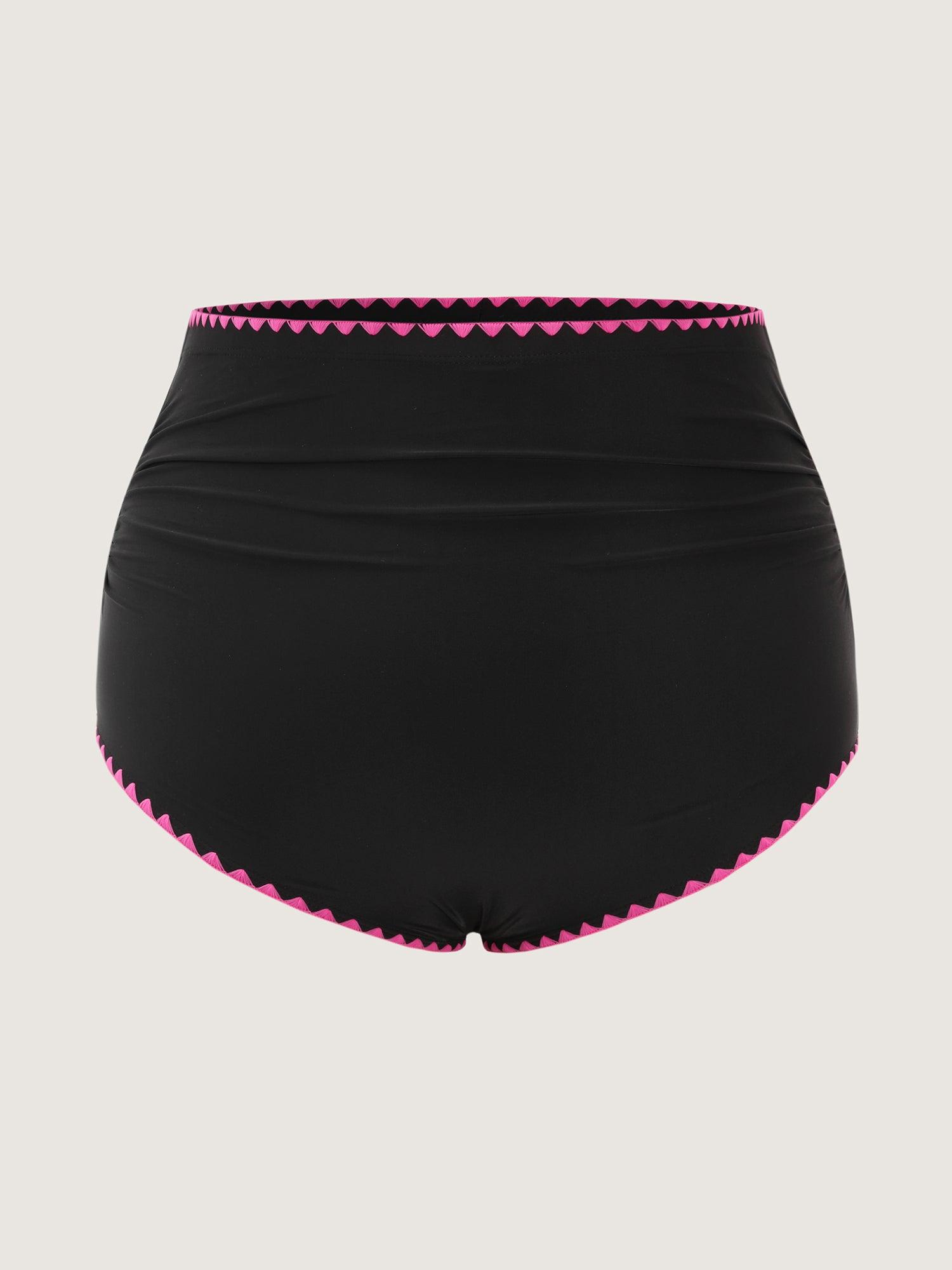 Shop Color Contrast Embroidered Pleated Swim Bottoms now and redefine your style with confidence at BloomChic. Tailored for mid and plus-size women. This trendy Swimwear Women, sizes 10-30. Color:Black;Style:Resort;Waist Design:High Rise;Prints:Non;Details:Contrast, Embroidered;Pocket:No-pocket;Belt:No-belt;Lining:Lining;Closure Type:Non;Structural function:Waist-Sculpt,Tummy-Sculpt