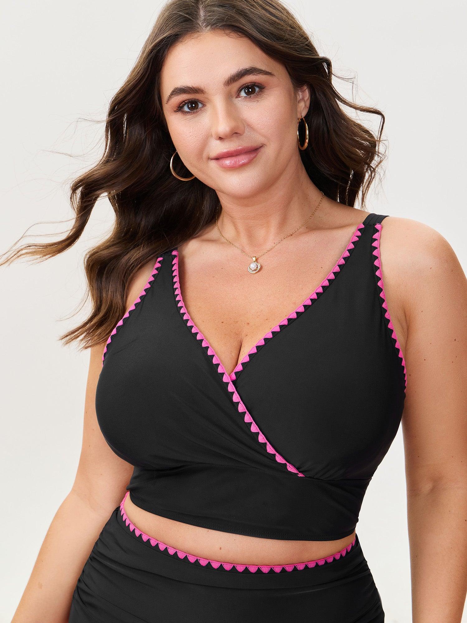 Shop Color Contrast Embroidered Swim Top now and redefine your style with confidence at BloomChic. Tailored for mid and plus-size women. This trendy Swimwear Women, sizes 10-30. Color:Black;Style:Resort;Coverage:Full;Prints:Non;Details:Embroidered, Contrast;Pocket:No-pocket;Belt:No-belt;Chest pad:Removable Padding;Structural function:Adaptive-Fit