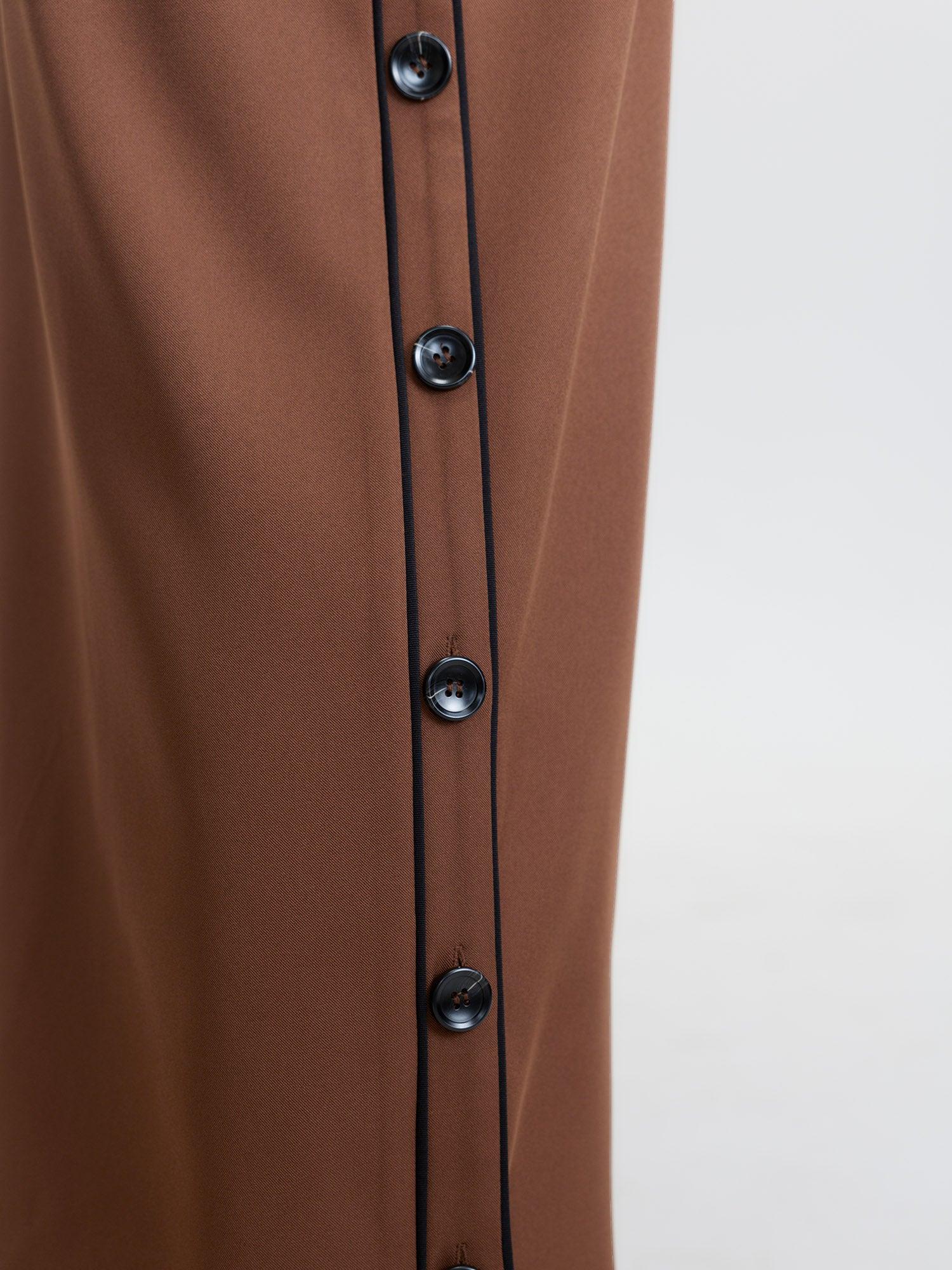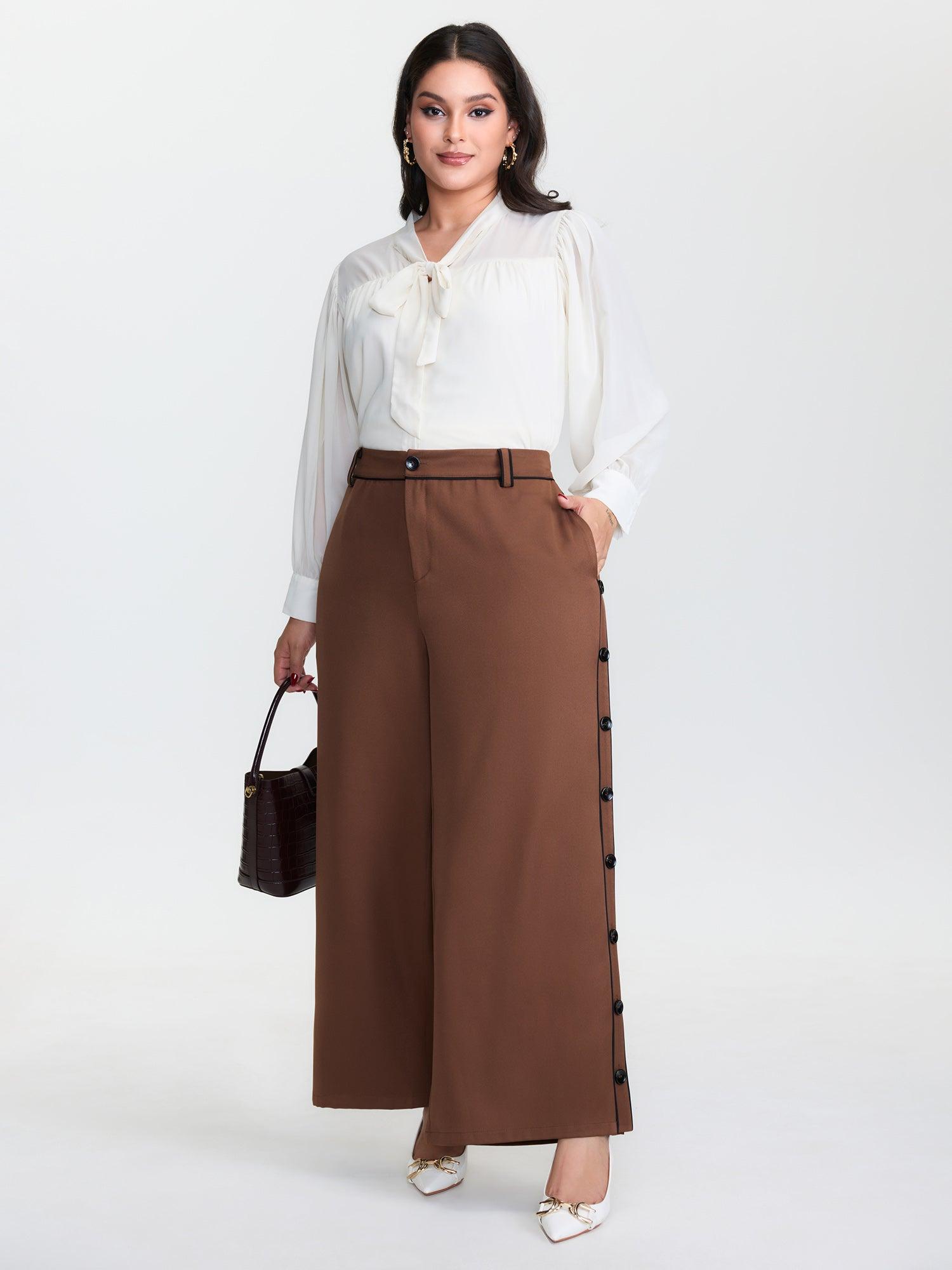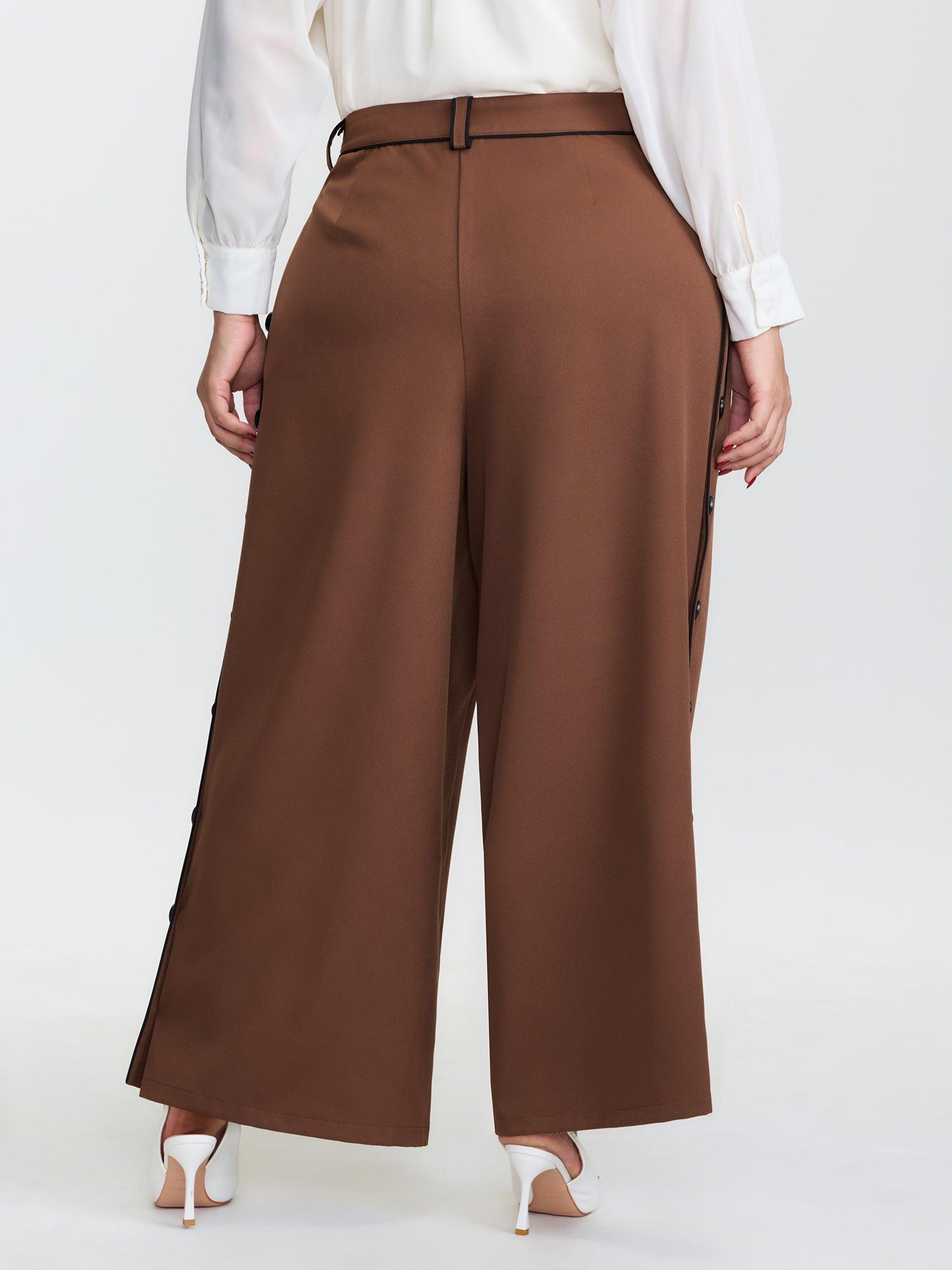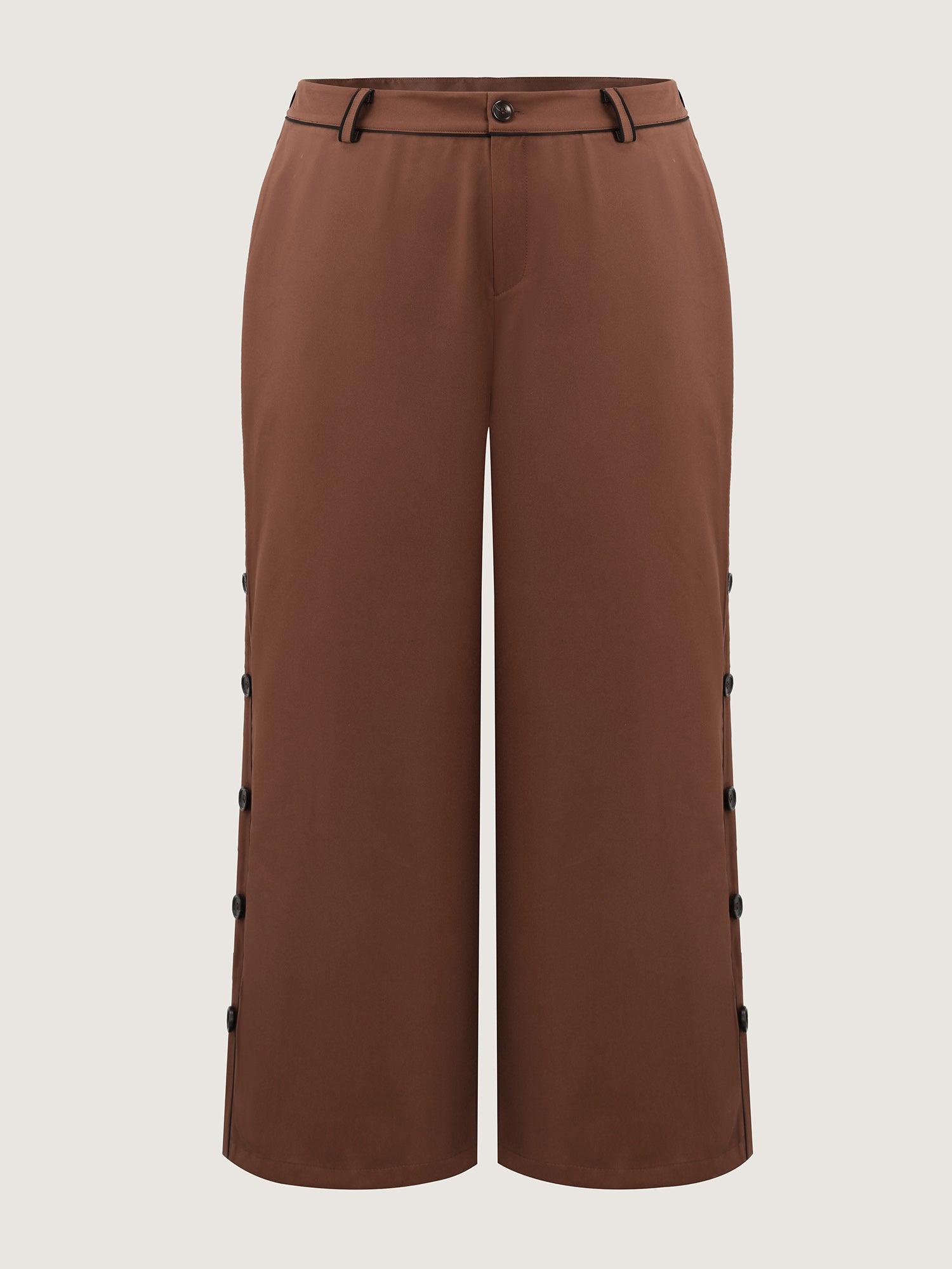 Shop Color Contrast Trim Button Detail Pants now and redefine your style with confidence at BloomChic. Tailored for mid and plus-size women. This trendy Bottoms Women, sizes 10-30. Color:Browncoffeecolor;Style:Timeless;Waist Design:Mid Rise;Prints:Non;Details:Button;Pocket:Side seam pocket;Belt:No-belt;Closure Type:Non