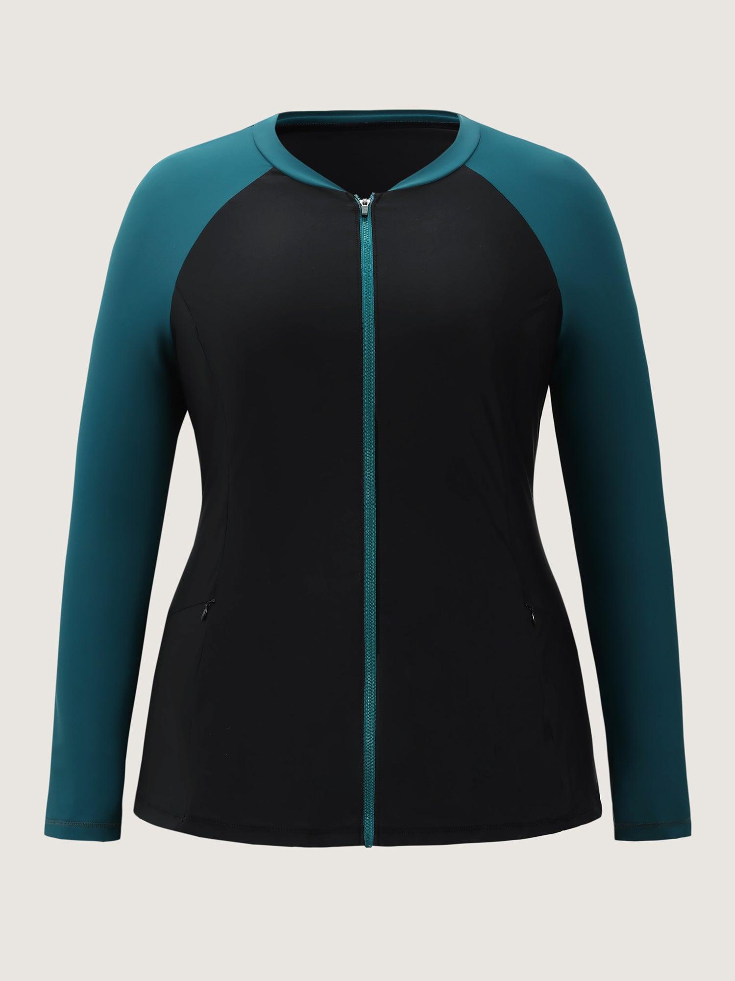 Shop Color Contrast Zipper Pockets Swim Top now and redefine your style with confidence at BloomChic. Tailored for mid and plus-size women. This trendy Swimwear Women, sizes 10-30. Color:Black;Style:Resort;Functional Fabric:Chlorine Resistant;Prints:Geometric & color block;Pocket:Slanted pocket;Belt:No-belt;Chest pad:No-chest pad;Structural function:Adaptive-Fit;Swimsuit types:UV Protection Cover-up