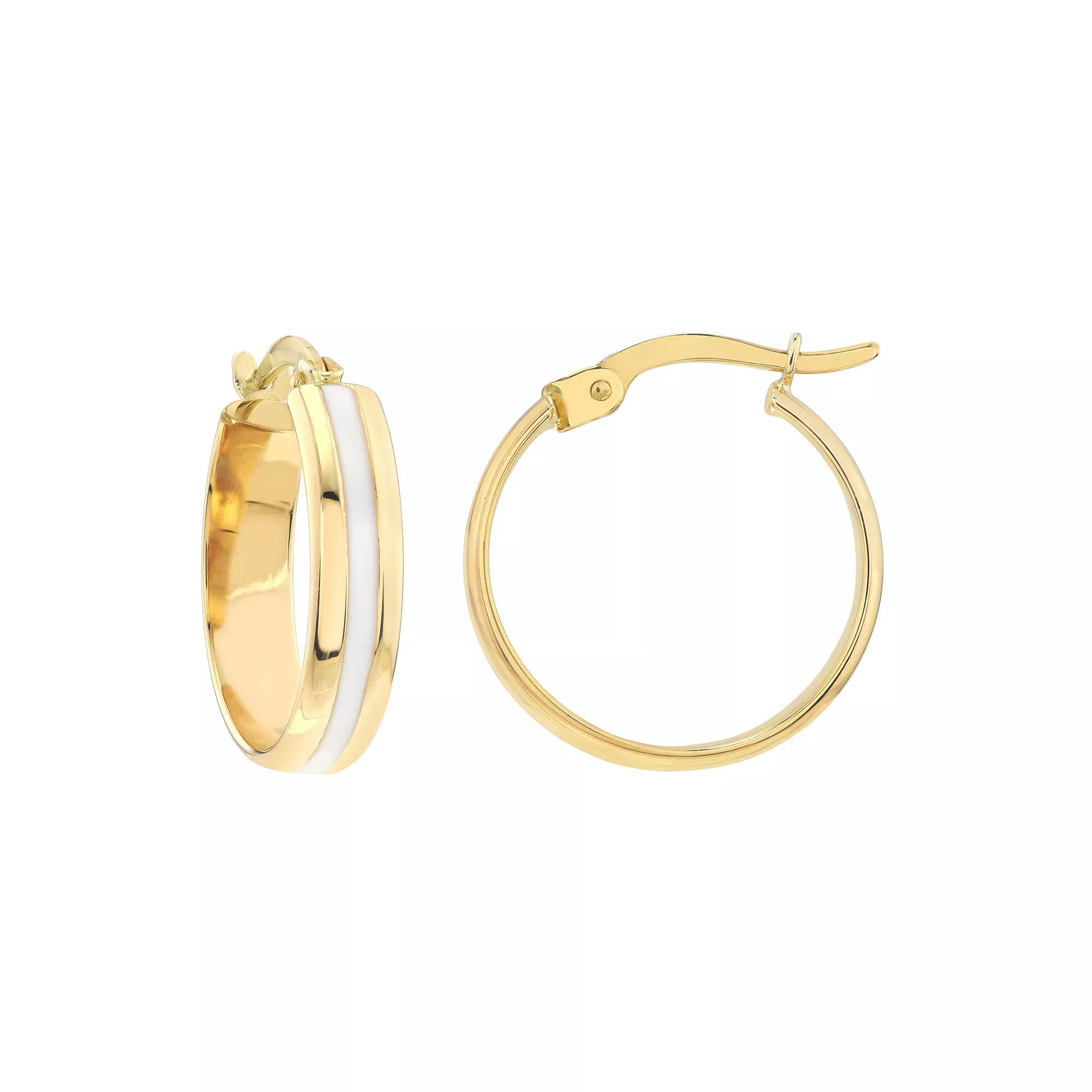 Add a pop of color to your jewelry wardrobe with these hoop earrings, featuring a white enamel center stripe. Add a pop of color to your jewelry wardrobe with these hoop earrings, featuring a white enamel center stripe. Length: 15 mm Backings: click-it Nickel free Metal: 14k gold Finish: enamel, polished Packaging: boxed White enamel details Size: One Size. Color: Yellow. Gender: female. Age Group: adult.