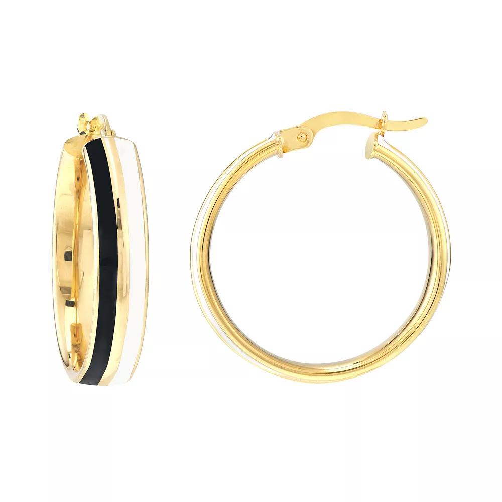 Featuring bold and colorful enamel, these Color Romance hoops will be noticed from every angle. Click on this JEWELRY & WATCHES GUIDE to learn about fit, styles, materials and more! Featuring bold and colorful enamel, these Color Romance hoops will be noticed from every angle. Click on this JEWELRY & WATCHES GUIDE to learn about fit, styles, materials and more! FEATURES Dimensions: 4 mm x 20 mm Backings: click-it Nickel safe Metal: 14k gold Finish: enameled, polished Packaging: boxed Size: One Size. Color: Yellow. Gender: female. Age Group: adult. Pattern: striped.