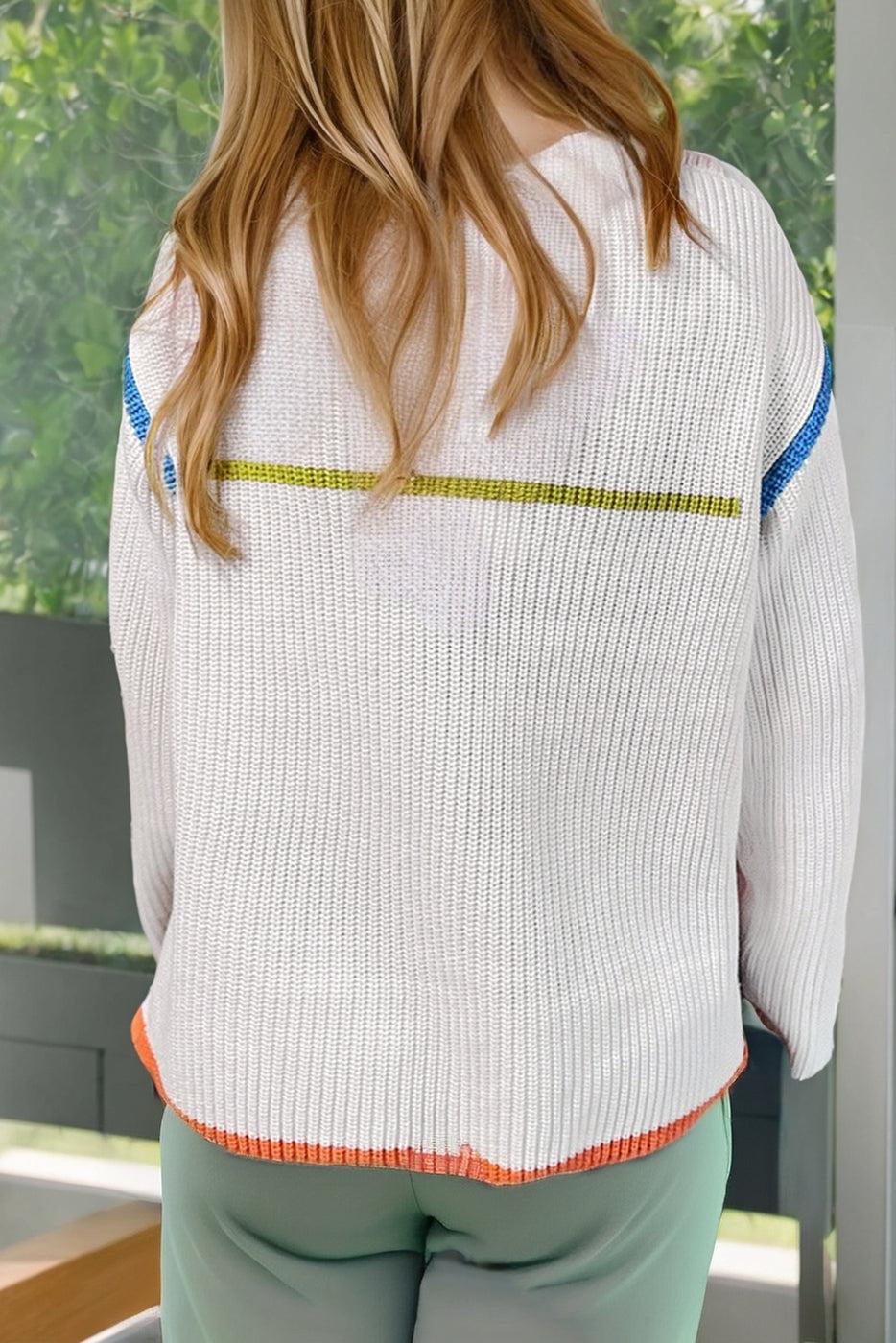 Highlighted by vibrant, eye-catching colorful edge detailing, this stylish sweater offers versatility and comfort. The zipped neckline allows for easy adjustments, while its high-quality knitted fabric ensures warmth and durability. Ideal for layering or wearing on its own, it's a perfect addition to any wardrobe.