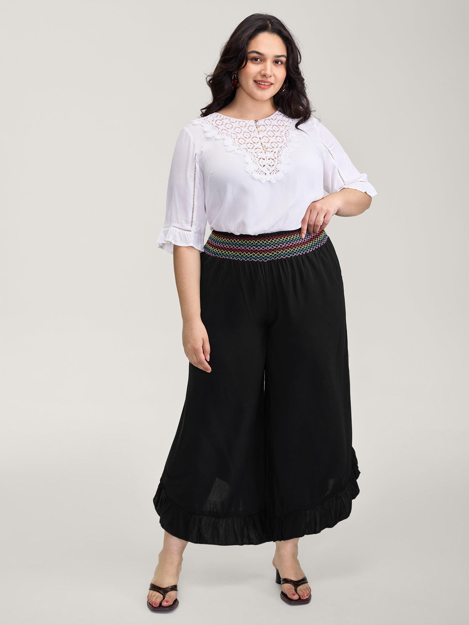 Shop Colorful Shirred Waistband Ruffled Hem Pants at BloomChic. Plus Size Clothing & Plus Size Pants. BloomChic is a digital-first fashion and lifestyle destination for modern women sizes 10-30.
