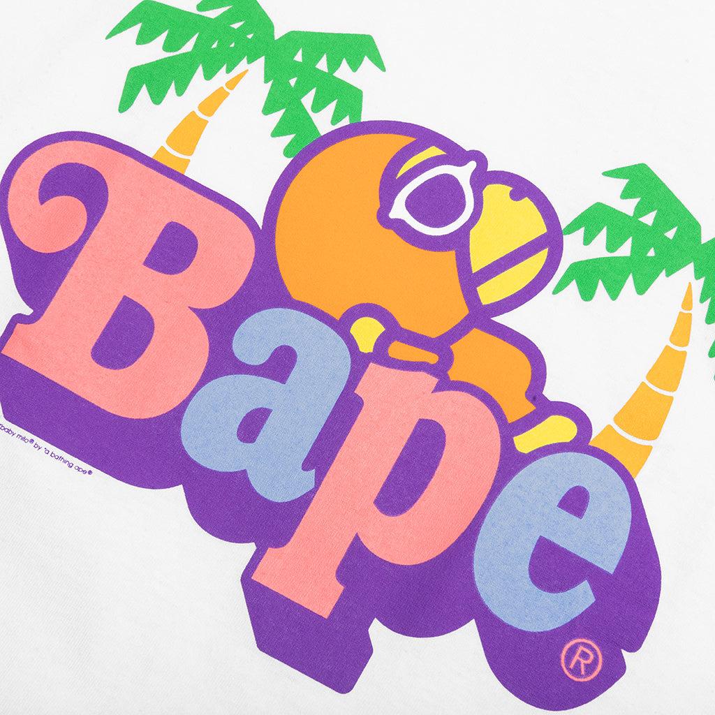 A Bathing Ape presents the Colors Milo on Bape Summer Tee in their latest drop. Cut from cotton with a regular fit, this tee features a ribbed crew neckline for everyday comfort. A screen-printed graphic on the front adds playful character, while a signature woven brand tag completes the look. 100% Cotton Regular fit Crew neckline Screen-printed graphics Woven brand tab on sleeve Style No: 002TEL301010M-WHT