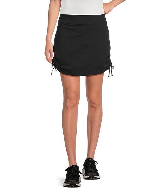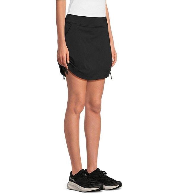From Columbia, this skort features:Comfort stretch fabricationA-line silhouetteMid riseComfort waistband Hand pocketBuilt in interior shortsOmni-Shade UPF 50Vertical drawcord at side hemline Pull-on constructionApprox. 17" lengthPolyester/elastaneMachine wash /tumble dry Imported.