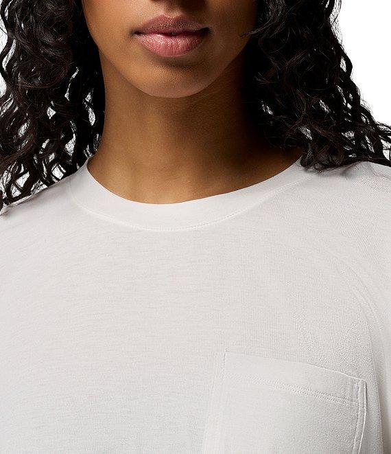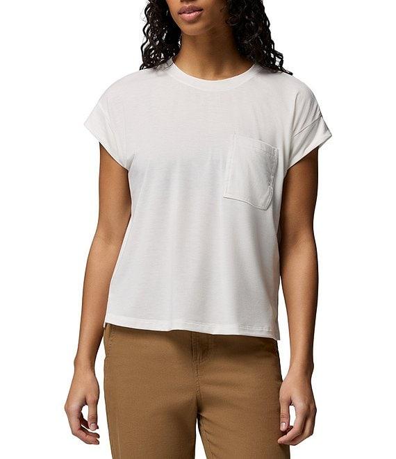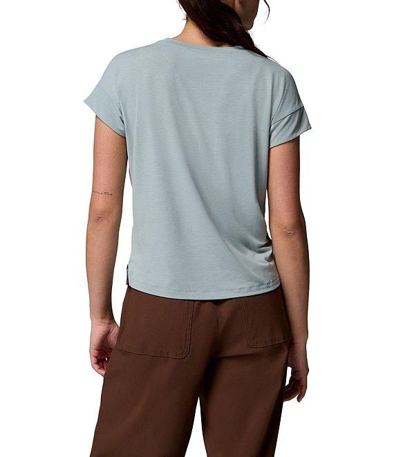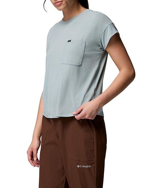 From Columbia, this top features: Knit fabrication Tee silhouette Crew neckline Short sleeves One chest patch pocket Omni-Wick technology Relaxed fit Side vent straight hemline Pullover construction Approx. 24" length Recycled polyester/viscose/elastane Machine wash Imported.