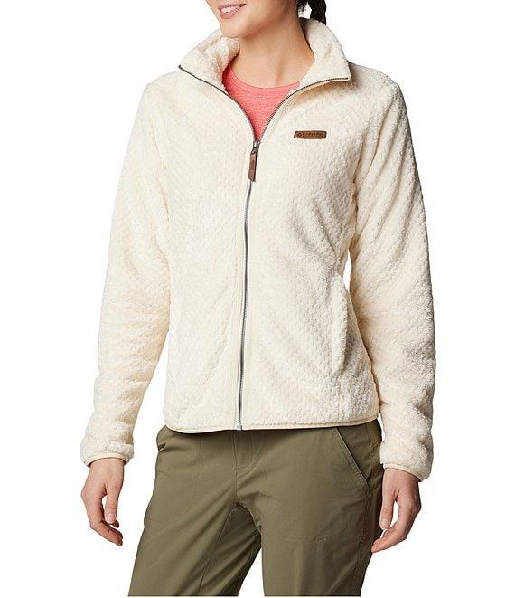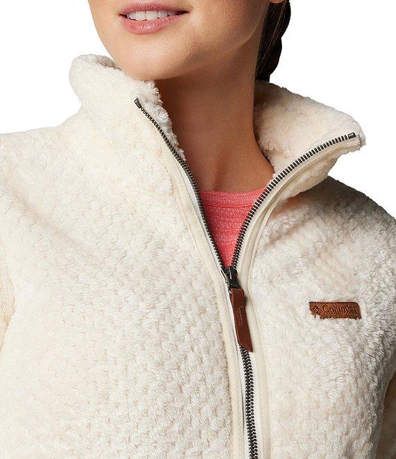 From Columbia, this jacket features: High pile sherpa (faux shearling) fabrication Bomber silhouette Stand collar neckline long sleeves Welt pockets Columbia logo Hourglass fit straight hemline zip front closure Poly fleece Machine wash Imported.