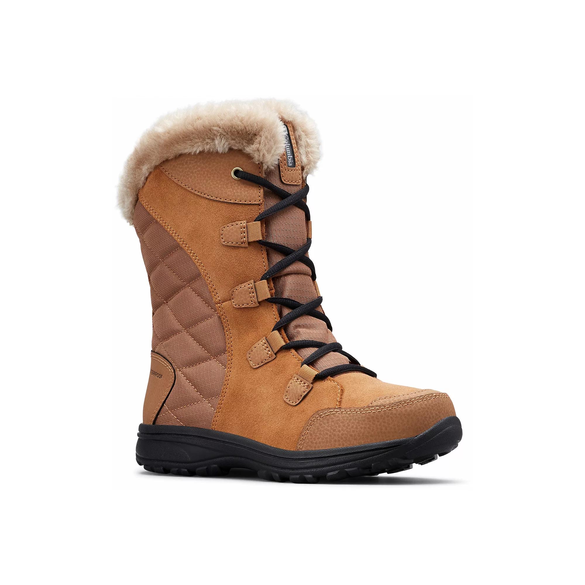 This Ice Maiden II Women's Boot from Columbia is a versatile winter shoe that provides both style and protection. Click this FOOTWEAR GUIDE to find the perfect fit and more! - https://www.kohls.com/feature/shoesizeguide.jsp. FEATURES: Waterproof, Boot shaft hits mid-calf, Lightweight midsole for superior cushioning and comfort. DETAILS: Leather, textile upper, Textile lining, TECHLITE lightweight midsole, Rubber outsole, Round toe, Lace-up closure, Polyurethane footbed, Treaded outsole, Product contains faux fur, 1-in. heel height, 0.5-in. platform height, 8-in. shaft height, 12-in. boot shaft circumference, Spot clean, Imported. Size: 10 Wide. Color: Elk Black. Gender: female. Age Group: adult.
