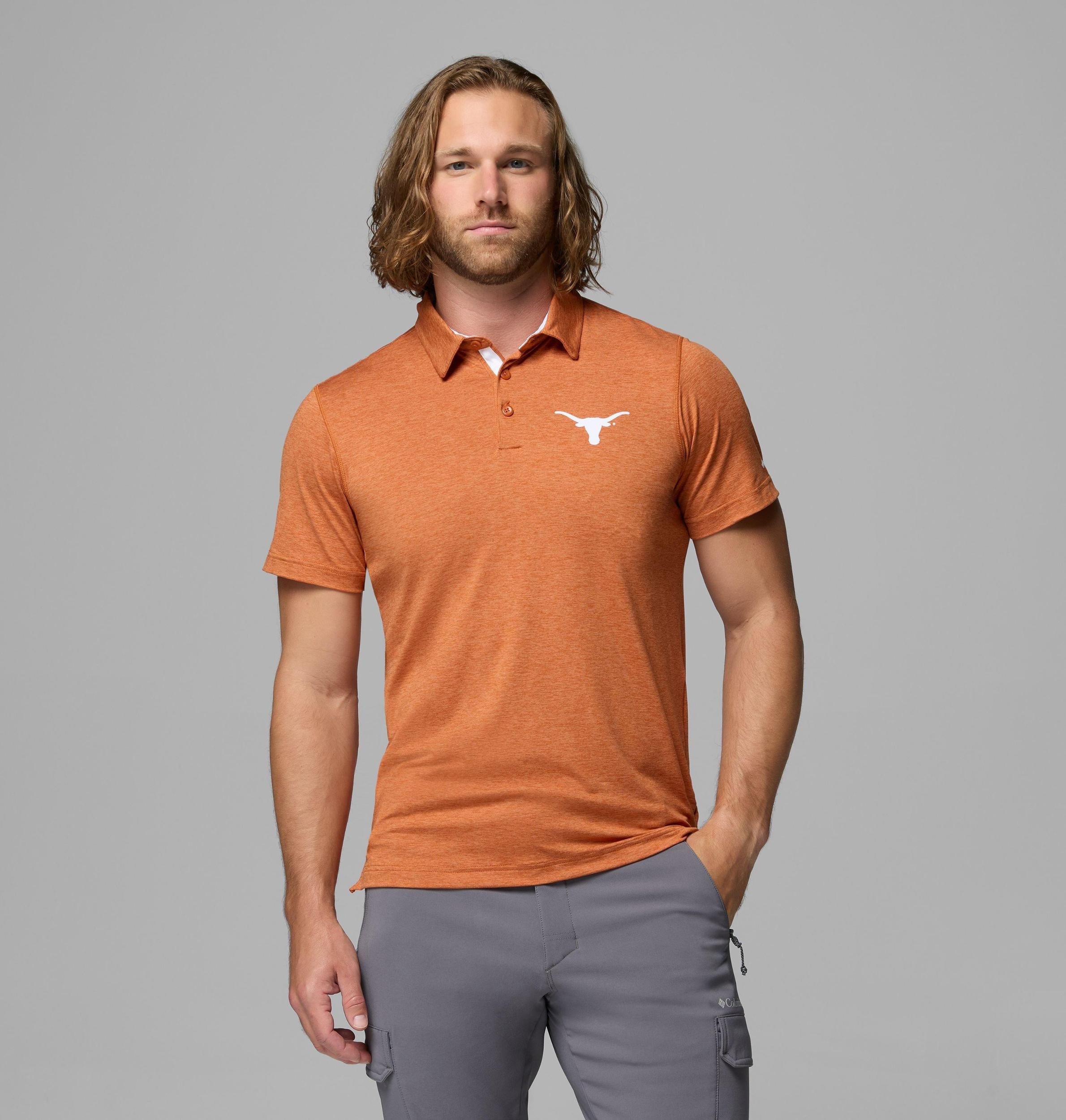 Show off your Texas Longhorns fandom with this Tech Trail polo by Columbia. It features a bold team logo on the upper left chest with a space dye design. This stretchy polo is made with Omni-Wick and Omni-Shade technology to block UVA and UVB rays while wicking away moisture to provide a comfy fit as you rep your Texas Longhorns.Show off your Texas Longhorns fandom with this Tech Trail polo by Columbia. It features a bold team logo on the upper left chest with a space dye design. This stretchy polo is made with Omni-Wick and Omni-Shade technology to block UVA and UVB rays while wicking away moisture to provide a comfy fit as you rep your Texas Longhorns.Material: 94% Polyester/6% ElastaneOmni-Shade technology blocks UVA and UVB raysSide splits at hemSpace dye designThree-button placketHeat-sealed graphicsShort sleeveMachine wash, tumble dry lowTagless CollarOfficially licensedImportedBrand: Columbia Color: Orange. Gender: male. Age Group: adult. Material: Cotton.