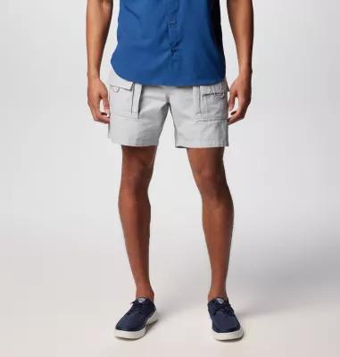Mens Grey These Cotton Shorts Are Designed For Comfort On The Water With Built-In UPF 50, A Partial Elastic Waist, And A Special Pocket Just For Your Beverage. Omni-Shade UPF 50 Sun Protection. Partial Elastic At Waist. Zip-Closed Security Pocket. D-Ring Detail. Beverage Friendly Pocket. 7" Inseam. Imported