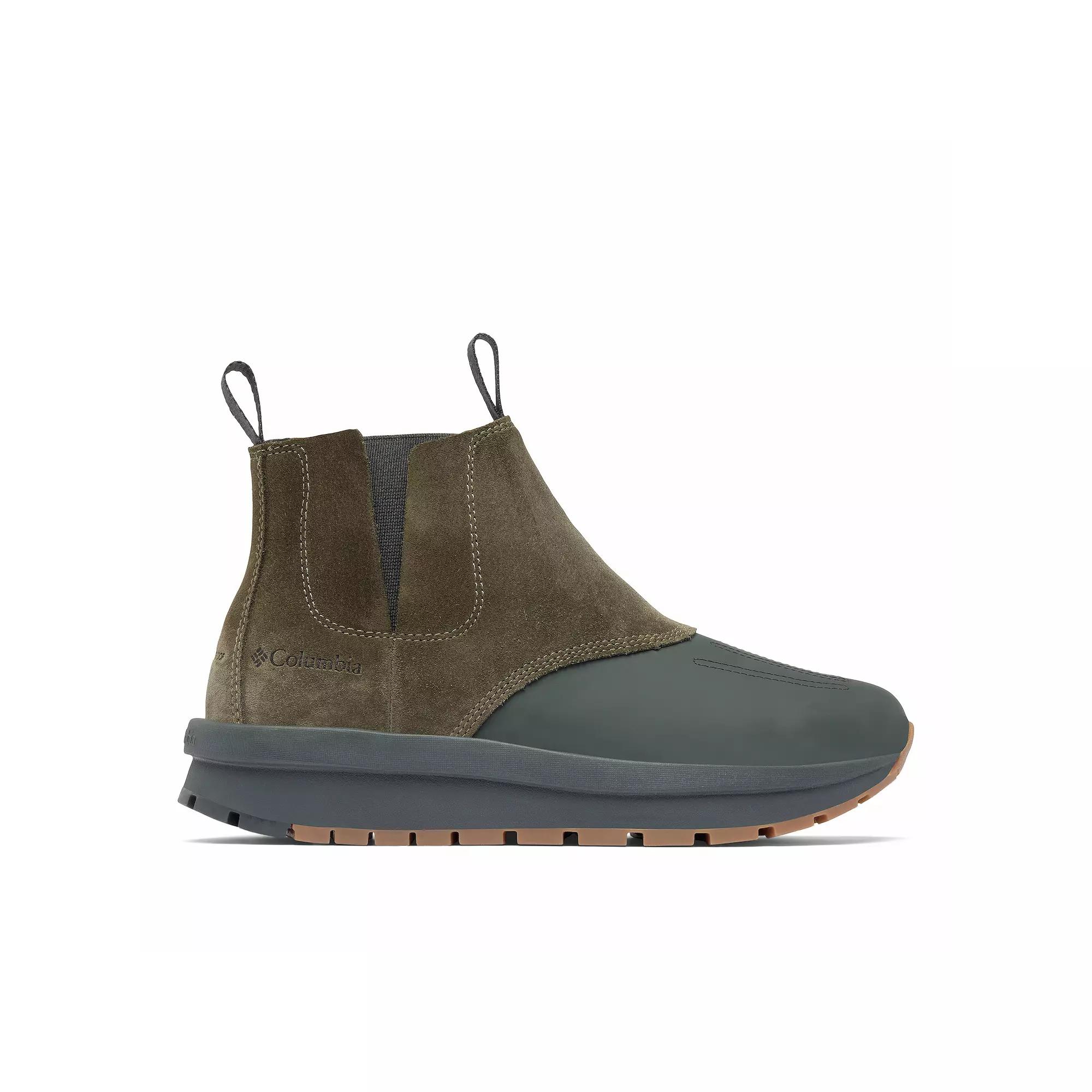 Embrace the perfect blend of style and practicality with these chic ankle boots from Columbia. Designed for adventure, they feature a waterproof construction and cozy fleece lining, ensuring your feet stay warm and dry while you navigate through your day with confidence and flair. Click this FOOTWEAR GUIDE to find the perfect fit and more! - https://www.kohls.com/feature/shoesizeguide.jsp. FEATURES: Suede leather chelsea combined with PU coated leather duck boot for protection, Omni-TECH™ waterproof breathable construction, Fleece liner for warmth, TECHLITE™ lightweight midsole for long lasting comfort and superior cushioning, Omni-GRIP™ non-marking traction rubber outsole. DETAILS: Imported, Round toe, Pull-on closure, 1 inch heel height, Treaded outsole, 0.5 inch platform height. FIT & SIZE: Boot shaft circumference: 12 inches, Boot shaft height: 6 inches. MATERIAL & CARE: Suede and leather upper, Textile lining, Polyurethane footbed, Techlite midsole, Rubber outsole, Spot clean. Size: 8. Color: Tundra Dark Moss. Gender: female. Age Group: adult.