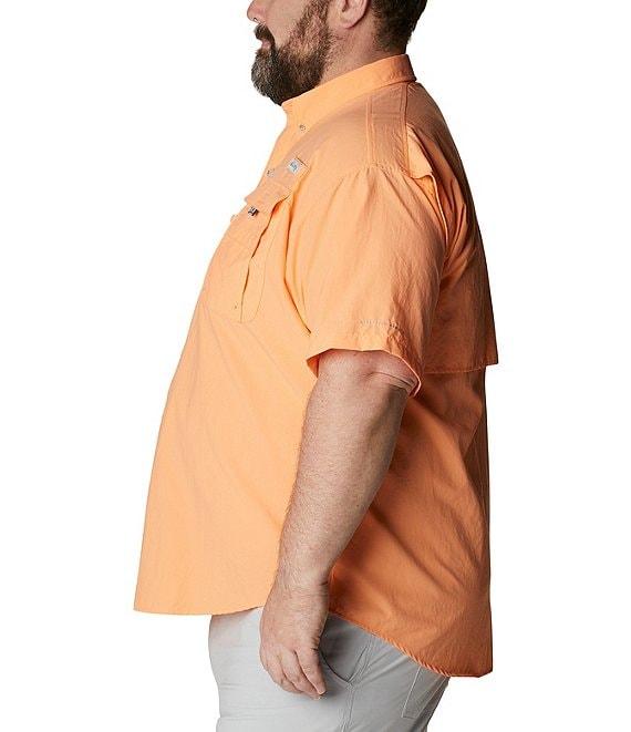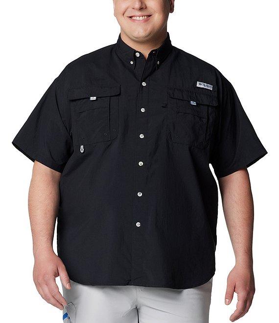 From Columbia Big & Tall, this shirt features: Lightweight, durable, quick-dry fabric Relaxed fit Button-down collar Short sleeves Button front Front flap pockets Designed specifically for the needs of anglers Omni-Shade UPF 30 for maximum protection for long hours in the sun Hidden vents at shoulders for bonus breathability Nylon taffeta Machine wash/tumble dry Imported.