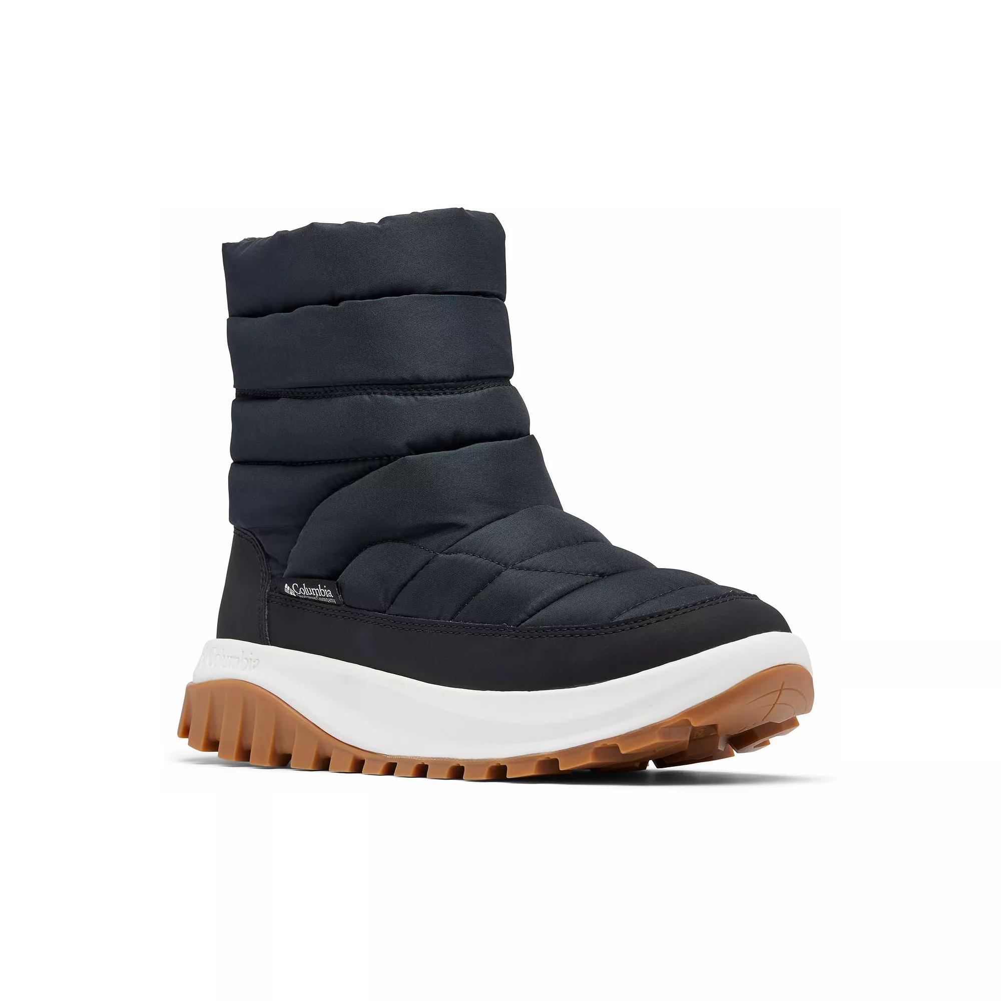 Step into comfort with these Columbia Snowtrot women's winter boots. Click this FOOTWEAR GUIDE to find the perfect fit and more! - https://www.kohls.com/feature/shoesizeguide.jsp. FEATURES: Breathable waterproof design, Lightweight midsole provides comfort and cushioning, Fleece interior construction, Medial zipper for eay on and off, Outsole provides exceptional traction in wet and dry conditions. DETAILS: Textile upper & lining, TECHLITE lightweight midsole, Adapt trax, rubber outsole, Round toe, Pull-on, Polyurethane footbed, Treaded outsole, 1-in. heel, 0.5-in. platform, 8-in. shaft height, 12-in. shaft circumference, Spot clean, machine wash, Imported. Size: 9 Wide. Color: Black Salt. Gender: female. Age Group: adult.