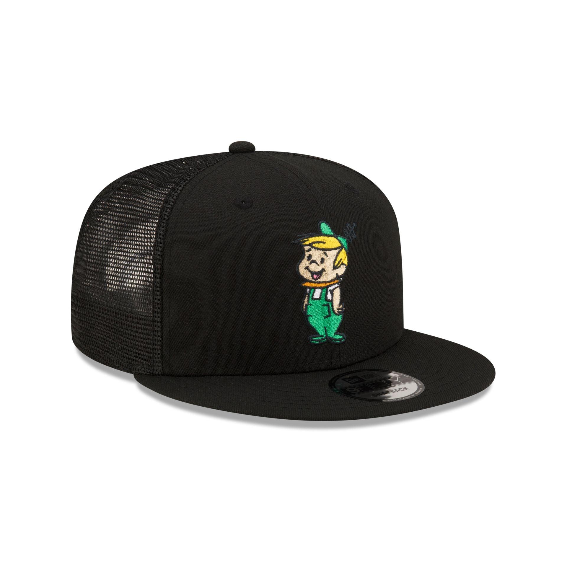 The Jetsons Elroy Jetson 9FIFTY Trucker Snapback features Elroy Jetson embroidered at the front panels with an adjustable closure at the rear and a gray undervisor.