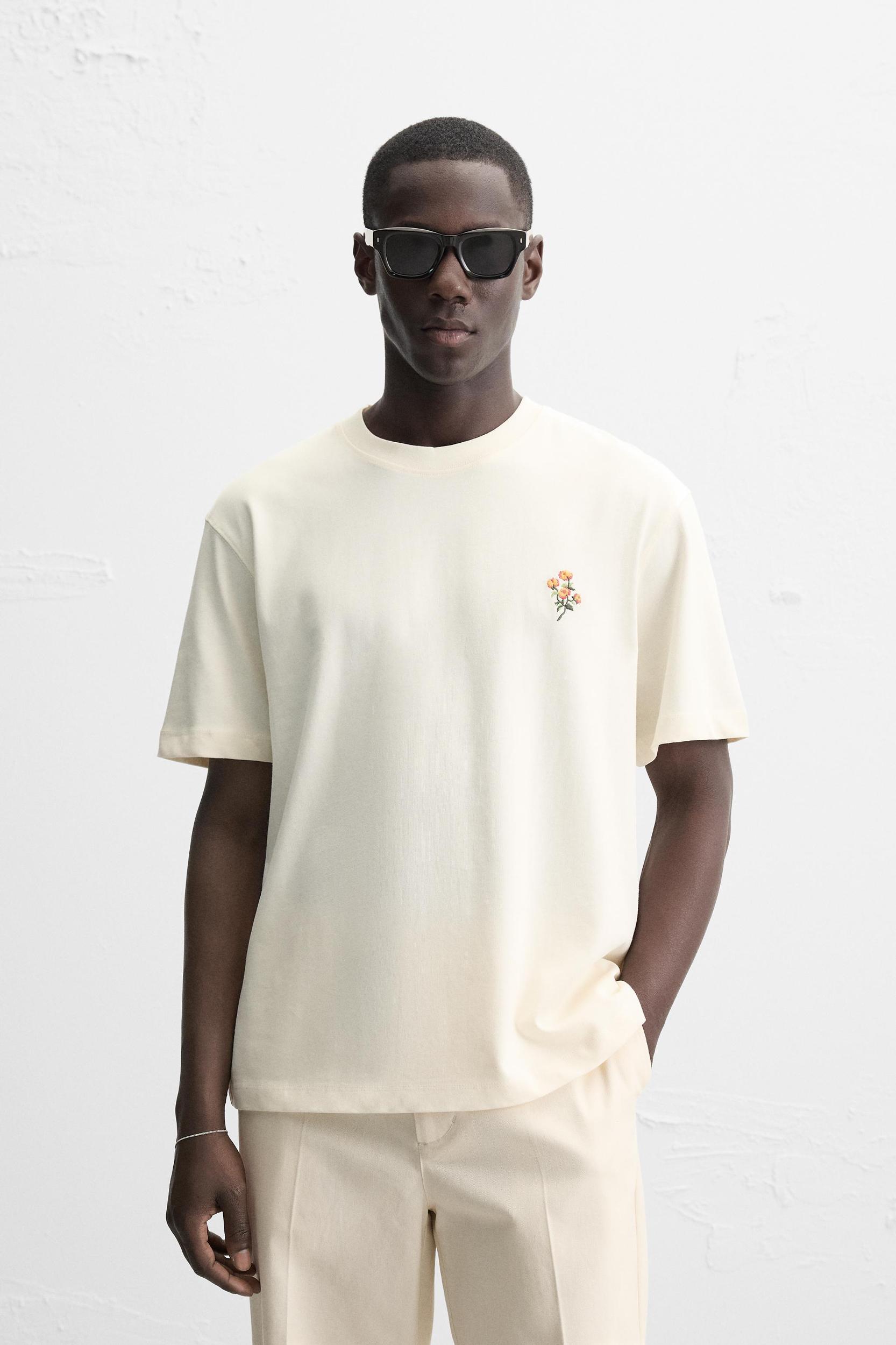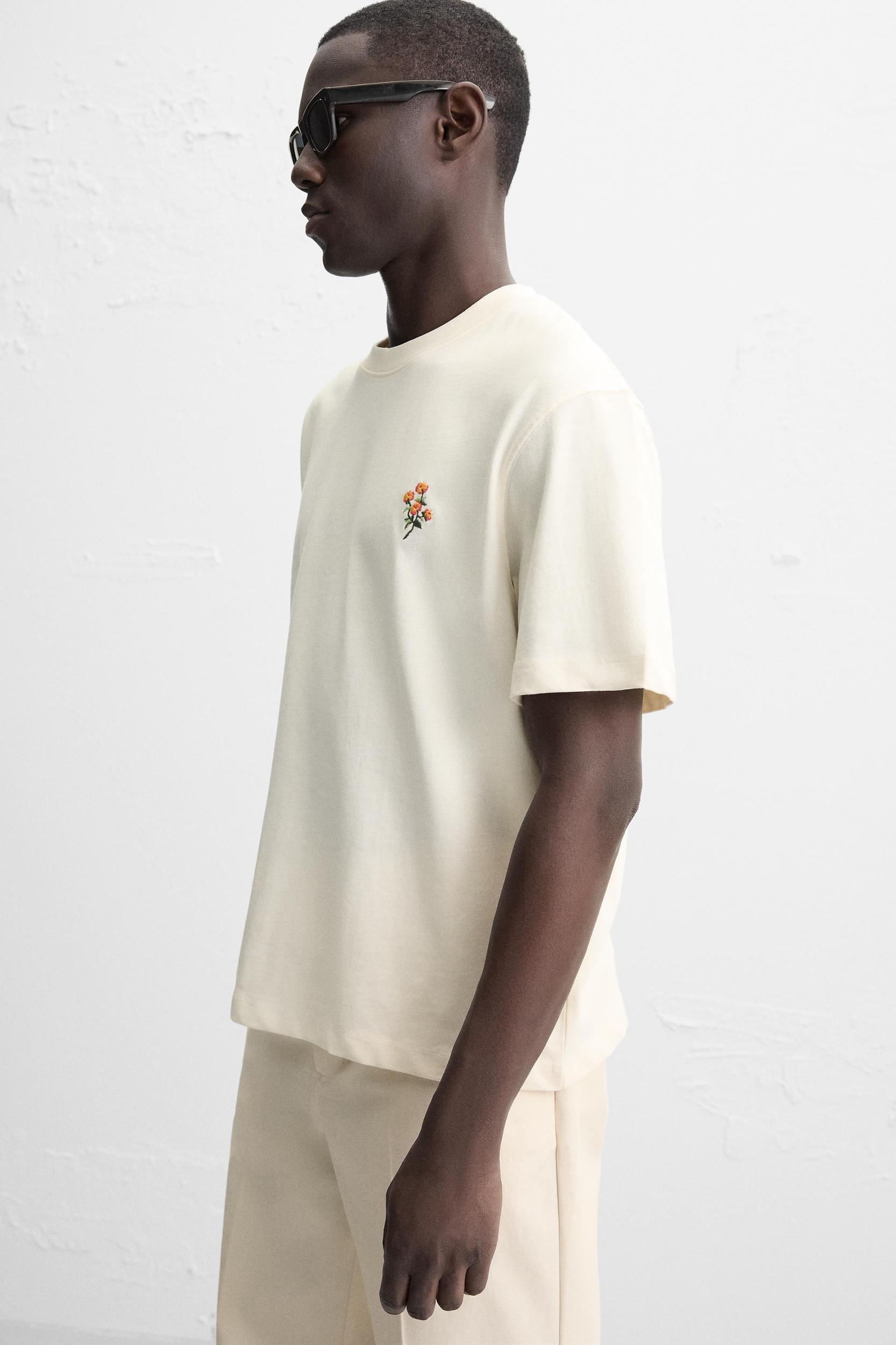 Relaxed fit T-shirt. Round neck and short sleeves. Contrasting front embroidery and back photo print.