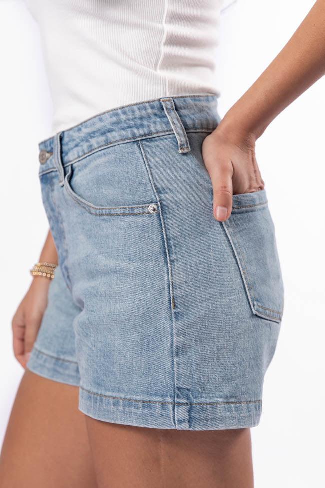 Details Relaxed Fit Denim Shorts Light Wash Fabric has stretch Button/zipper closure, functional pockets Unlined Size 25 inseam: 4" Material and Care 99% cotton 1% spandex Machine wash cold, no drum drying Patterns may vary Materials may have natural variations Colors may vary from different viewing devices.