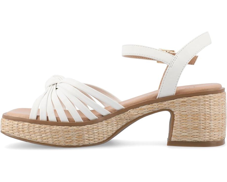 Elevate your wardrobe with the Journee Collection® Hally sandals that feature stylish 2 1/4-inch block heels and a 1-inch platform. These platform sandals are crafted with a faux leather upper that showcases an ankle strap with a buckle closure for a trendy and secure fit. The 4 mm tru comfort foam™ footbed and polyurethane outsole ensure both comfort and style, making these heeled sandals a chic choice for warm-weather occasions.