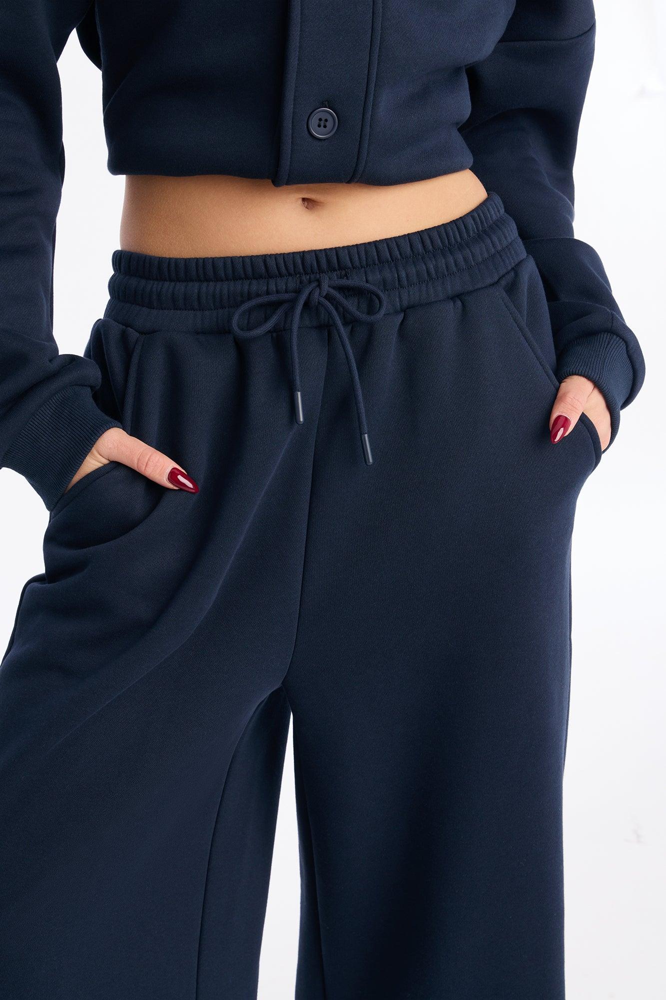 Comfort Season Fleece Wide Leg Pant - Navy Female