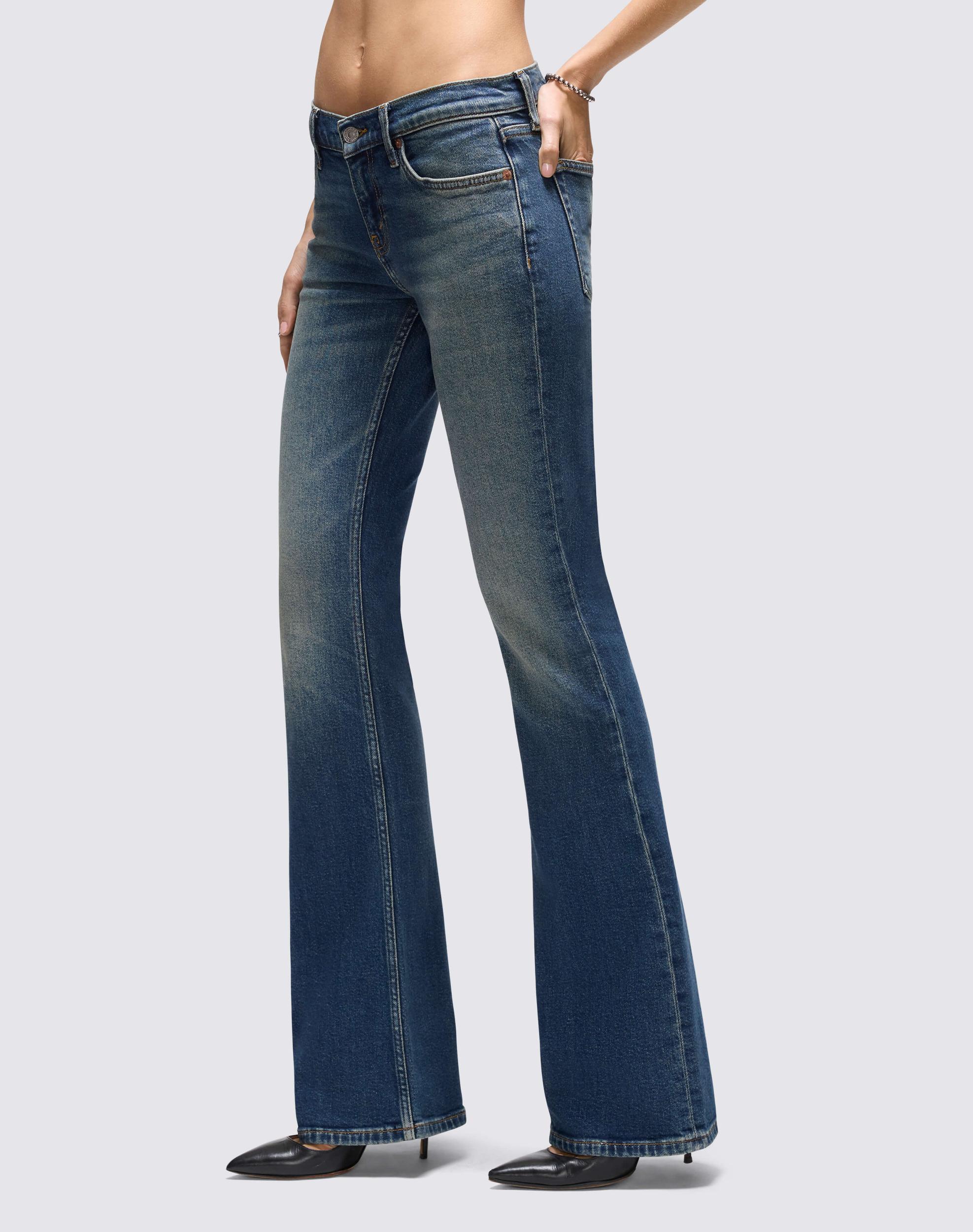 The Low Rise Micro boot is a modern boot jean designed for streamlined silhouette with just the right flare. Features a whiskered distressed indigo wash with a perfect wear and the touch of tint on our iconic comfort stretch denim, classic zipper fly and finished hem.